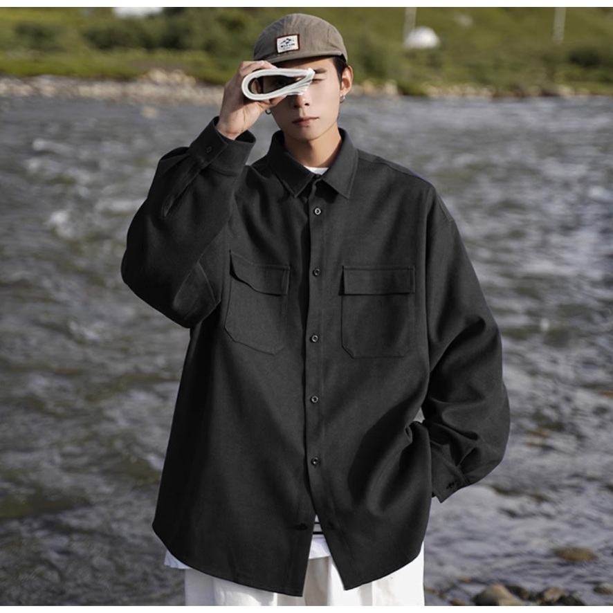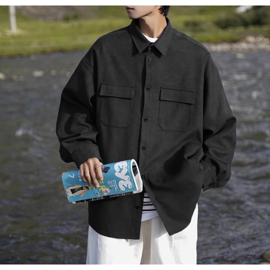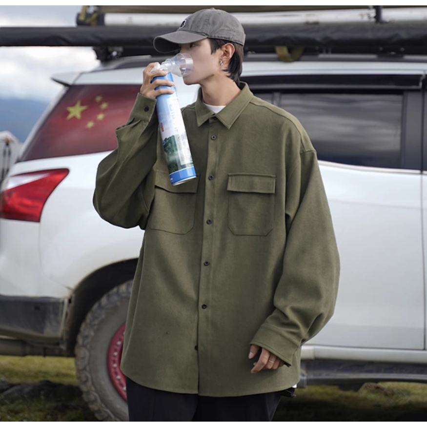 【K-2】CITYBOY 日系穿搭 水洗磨毛工裝襯衫 水洗 磨毛 工裝襯衫 長袖襯衫 寬版 襯衫 情侶 工裝【W015】軍綠色,M|軍綠色,L|軍綠色,XL|黑色,M|黑色,L|黑色,XLShirtsK-2 Fashionboy