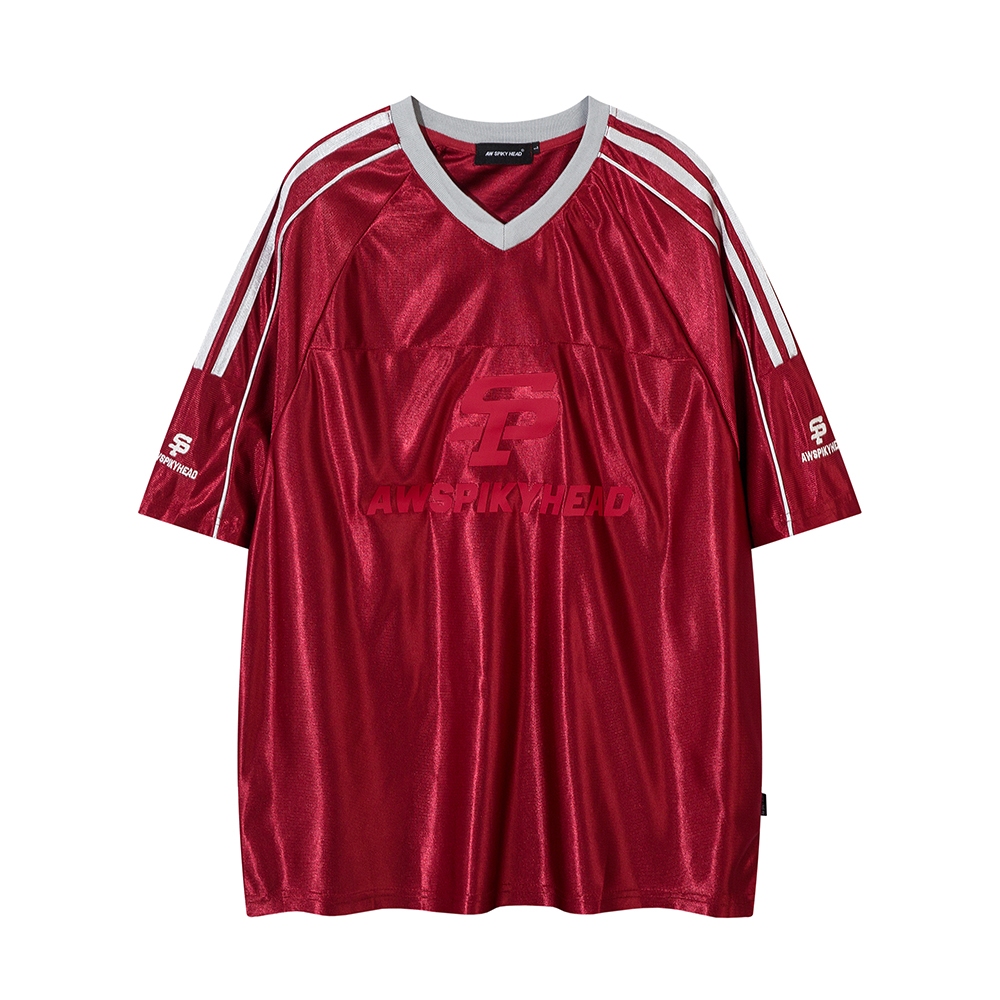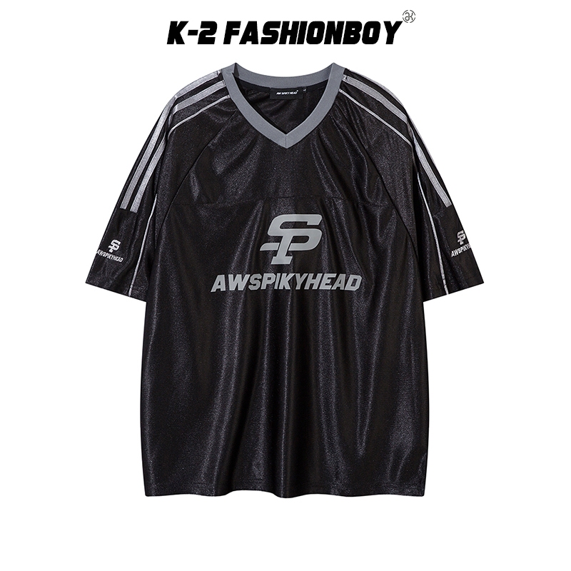 【K-2】AW SPIKY HEAD V領 緞面 刺繡 LOGO 球衣 短袖上衣 情侶穿搭 運動 潮流【HAW6077】黑,M|黑,L|黑,XL|黑,XXL|紅,M|紅,L|紅,XL|紅,XXLT-ShirtsK-2 Fashionboy