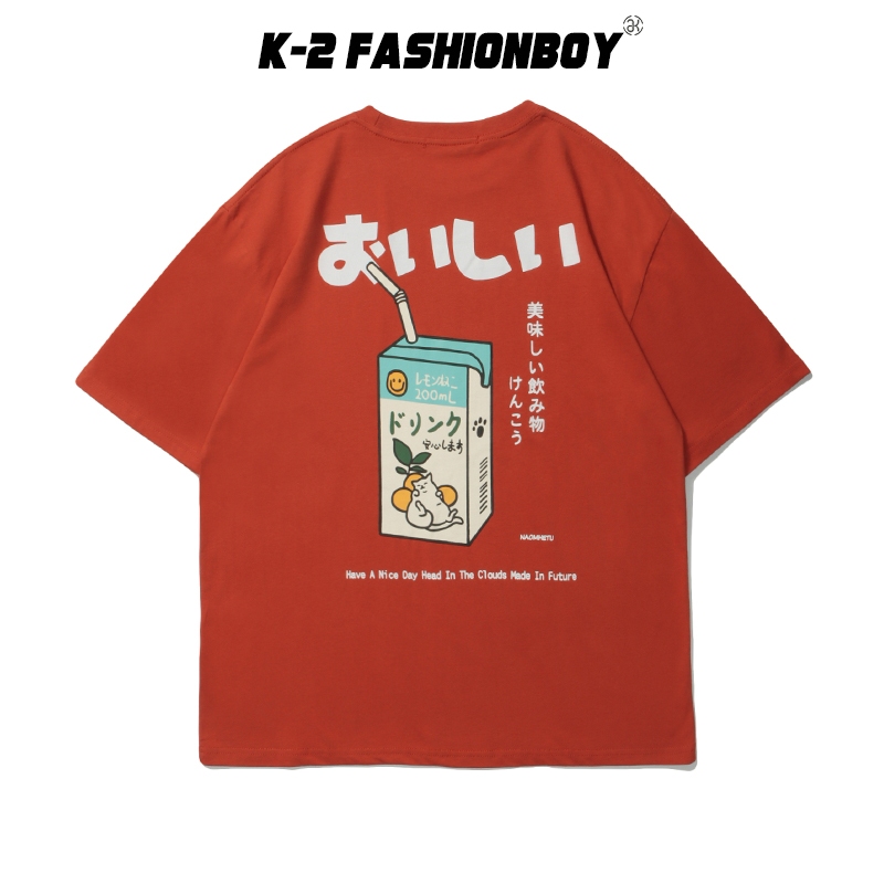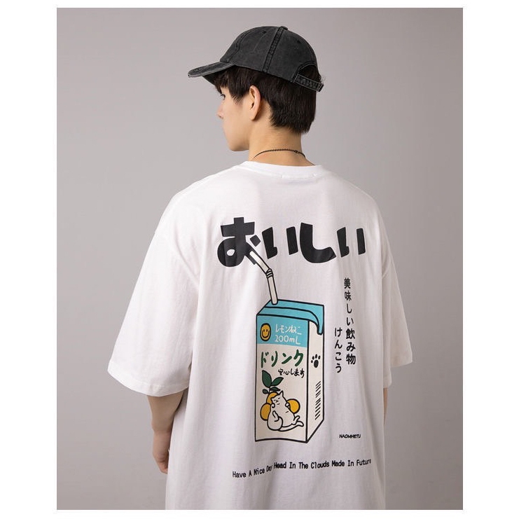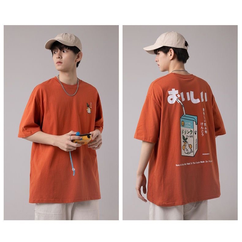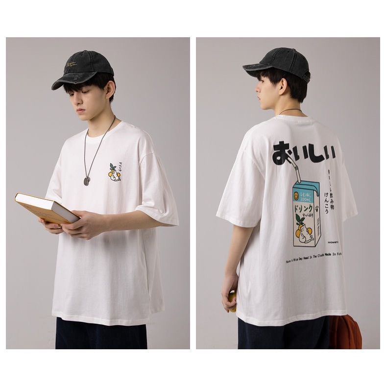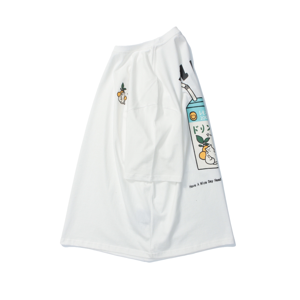 【K-2】NAOMHETU 貓咪牛奶 日系 美味 短T 刺繡貓咪 可愛 肥貓 日式穿搭 復古Y2K 情侶T【HN236】白色,M|白色,L|白色,XL|橘色,M|橘色,L|橘色,XLT-ShirtsK-2 Fashionboy