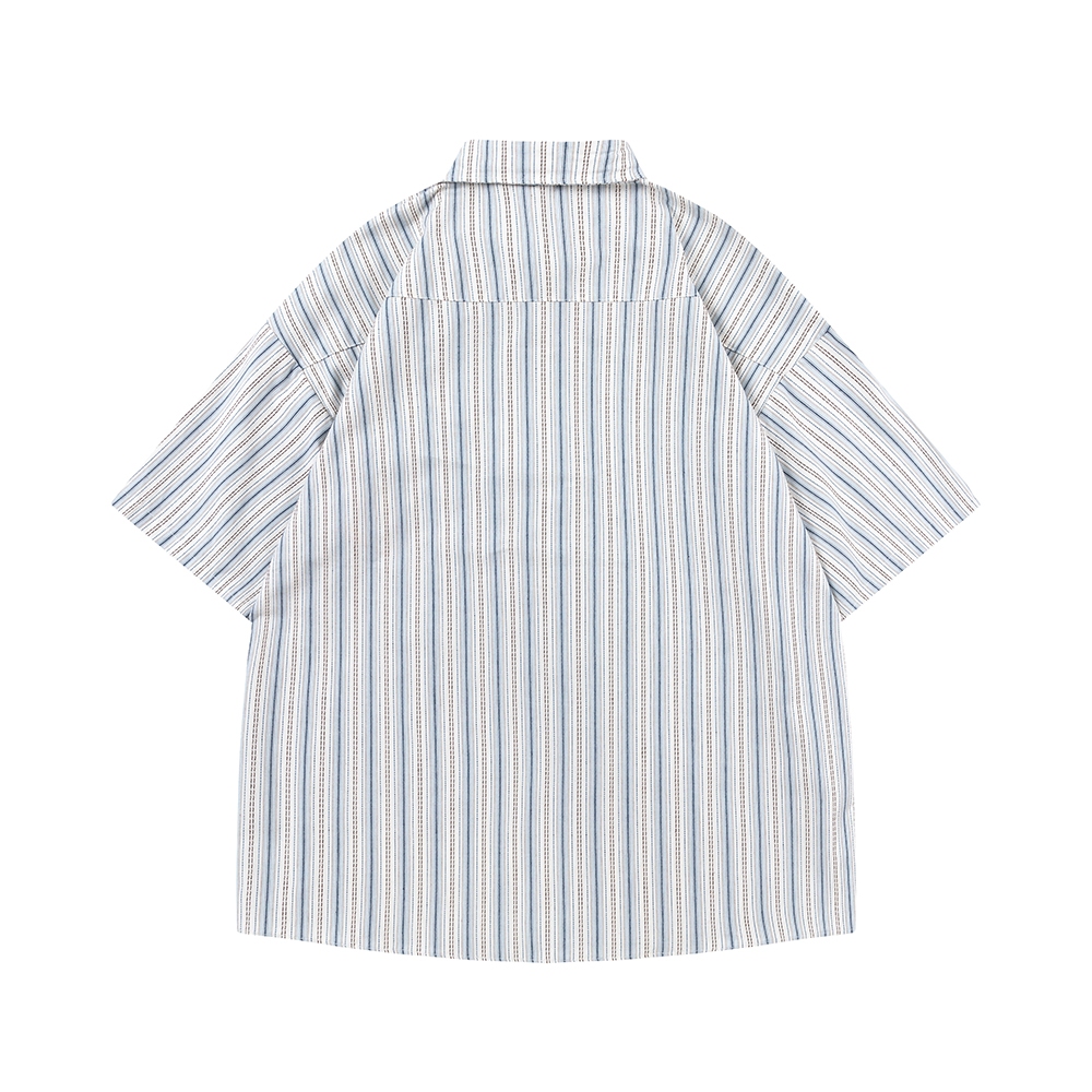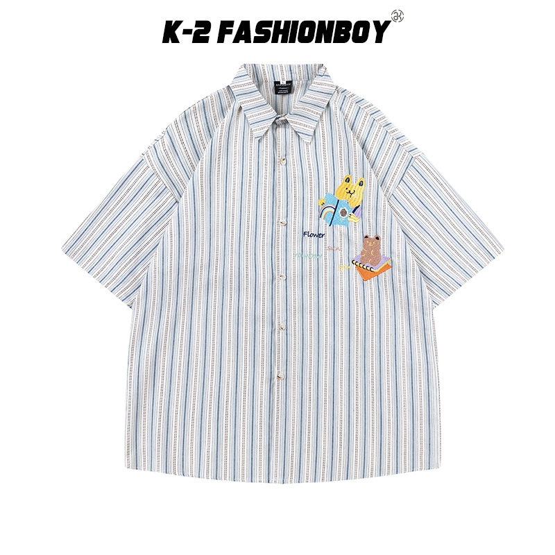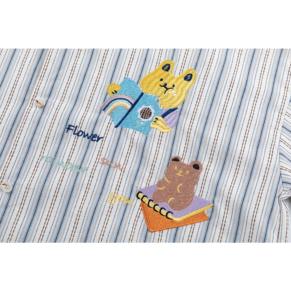 【K-2】RFAUSNTIY 可愛小熊 兔兔 刺繡 條紋襯衫 復古襯衫 短袖襯衫 落肩 條紋 Y2K襯衫【H10036】M|L|XLShirtsK-2 Fashionboy