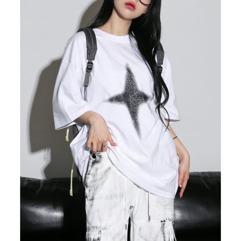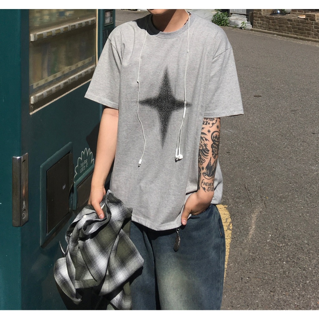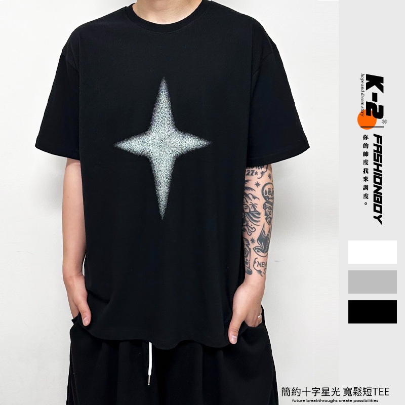 【K-2】十字星光 斑駁 復古 簡約 LOGO 落肩 寬鬆 短T 短袖上衣 BOX 十字 星光 星星 短踢【K2700】白色|灰色|黑色T-ShirtsK-2 Fashionboy