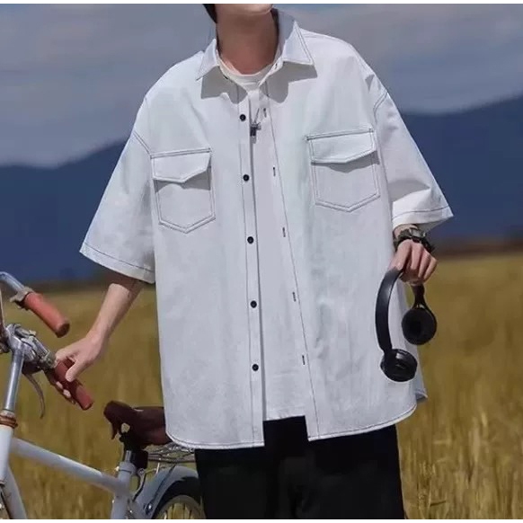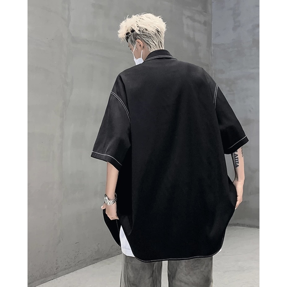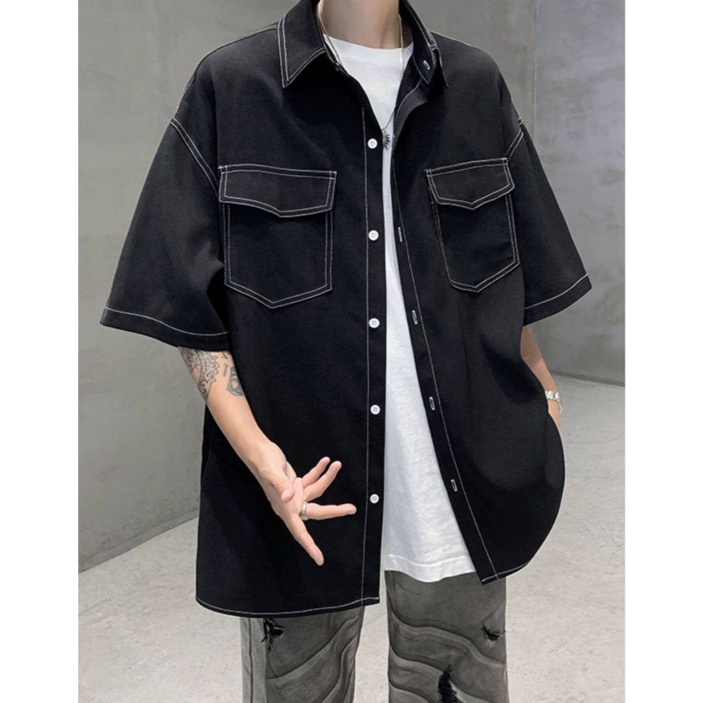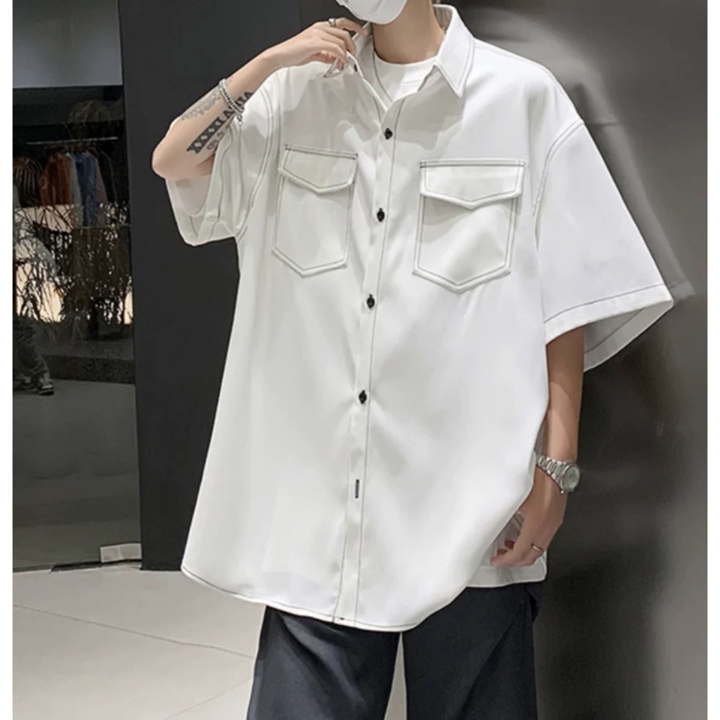 【K-2】日系復古 反車線 明線 工裝襯衫 短袖襯衫 口袋襯衫 復古襯衫 VINTAGE 襯衫 Y2K K2【J563】白色,M|白色,L|黑色,M|黑色,LShirtsK-2 Fashionboy