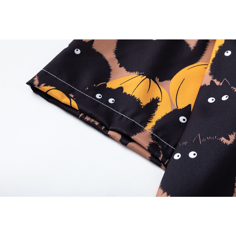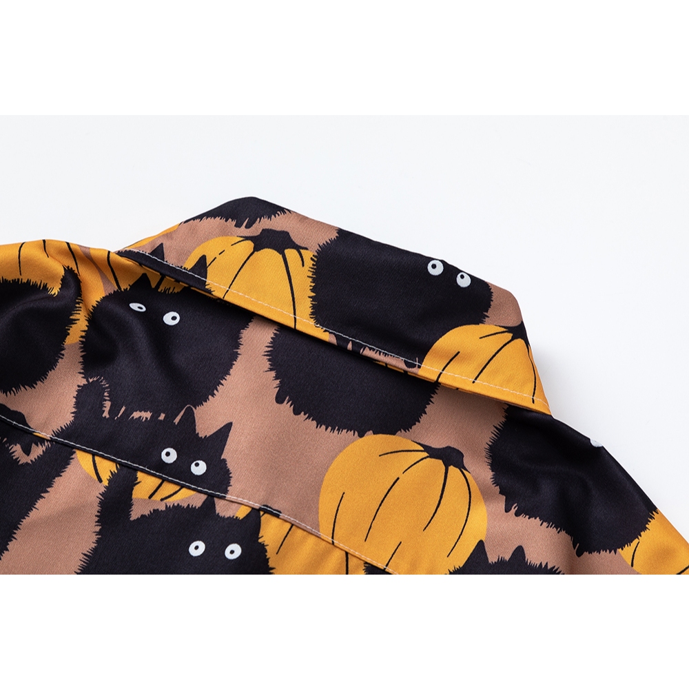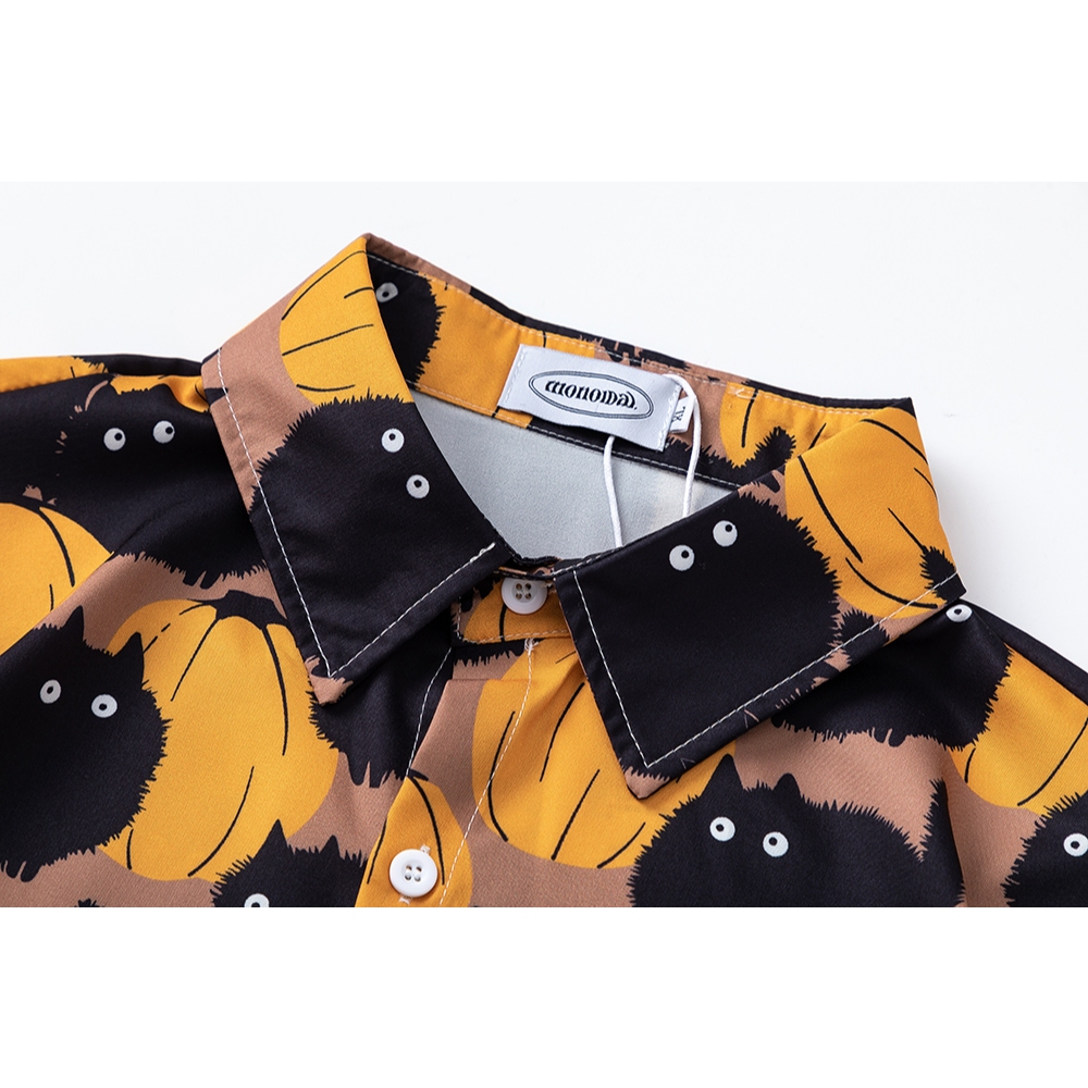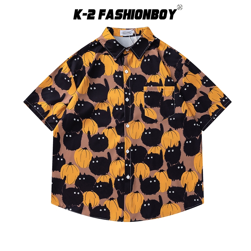 【K-2】滿版 南瓜 小煤球 黑黑 可愛 超Q 短袖襯衫 口袋襯衫 穿搭 男女不拘 寬鬆 中性 有趣【J3818】M|L|XL|XXLShirtsK-2 Fashionboy
