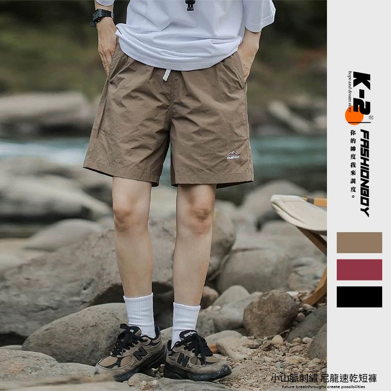 【K-2】小山脈刺繡 LOGO 尼龍 速乾短褲 山脈 刺繡 短褲 速乾 衝鋒褲 山系 登山 露營 運動 褲子【J621】紅色,M|紅色,L|卡其色,M|卡其色,L|黑色,M|黑色,LK-2 Fashionboy