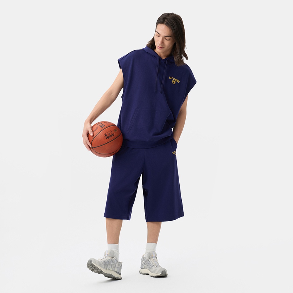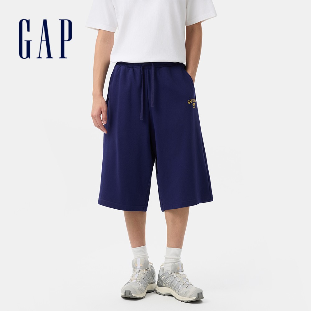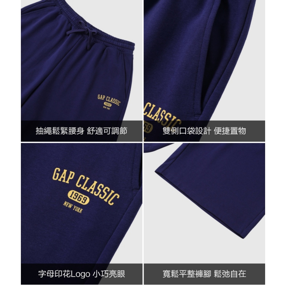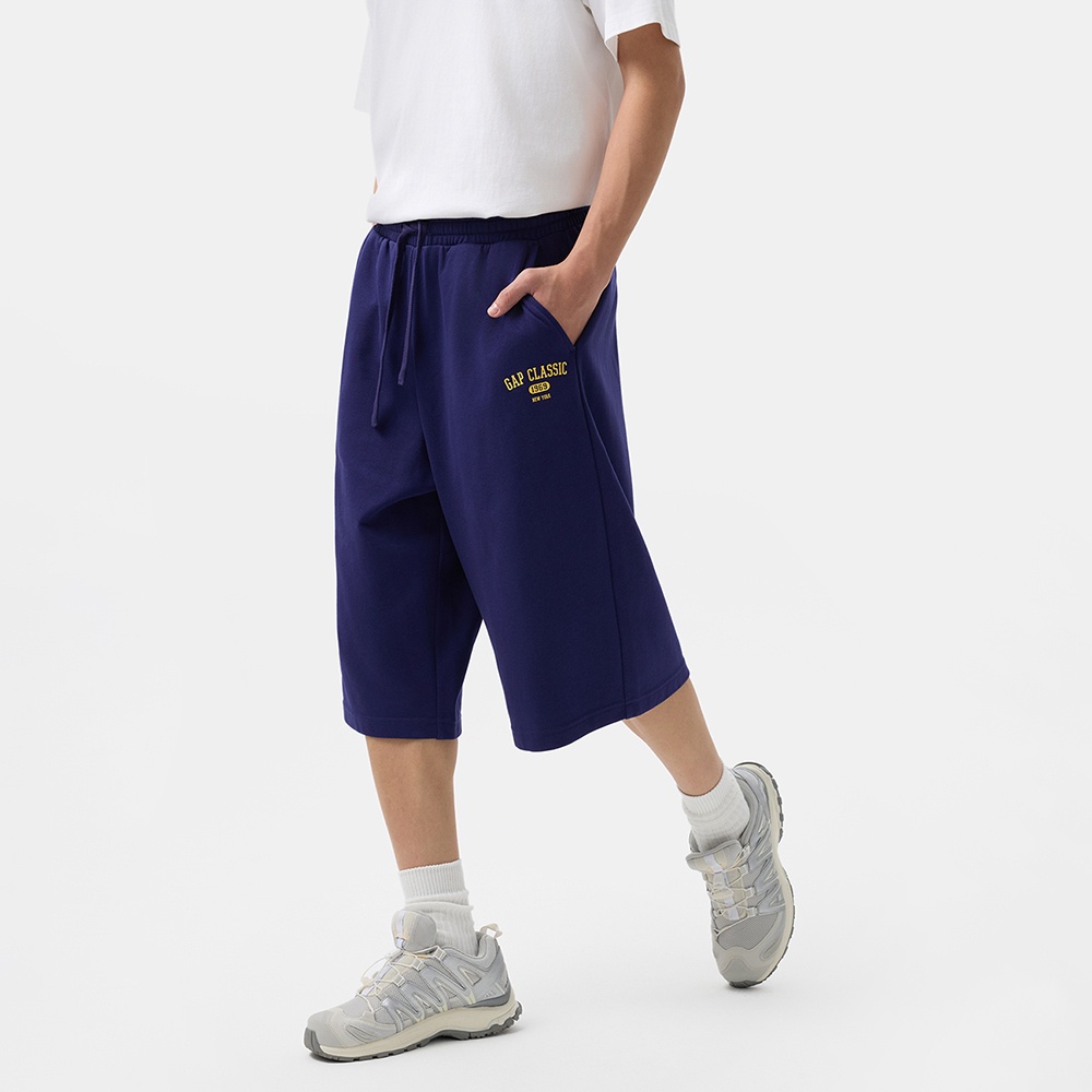 Gap 男裝 Logo印花抽繩鬆緊七分褲-深藍色(727467)L|XL|XXL|XXXL|S|MGap官方旗艦店