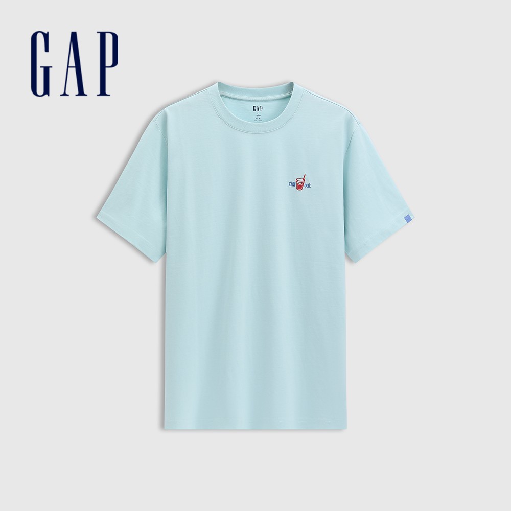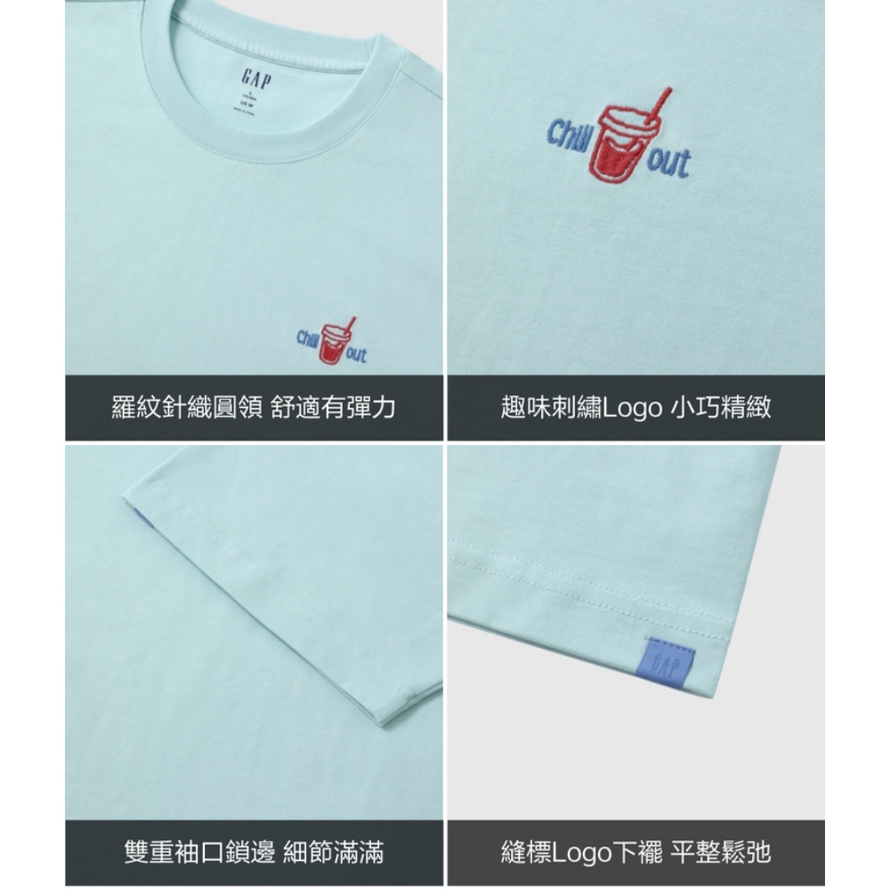 Gap 男裝 純棉刺繡圓領短袖T恤-水綠色(729108)S|M|L|XL|XXL|XXXL|XST-ShirtsGap官方旗艦店