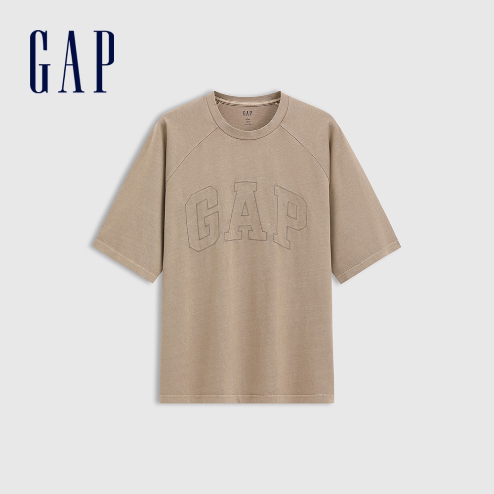 Gap 男裝 Logo純棉刺繡圓領短袖T恤 水洗棉系列-卡其色(729004)XS|S|M|L|XL|XXL|XXXLT-ShirtsGap官方旗艦店