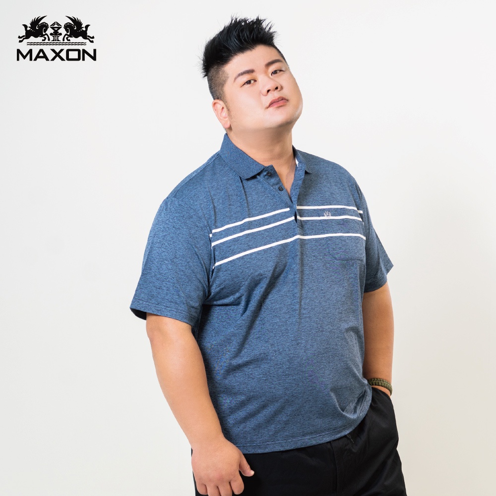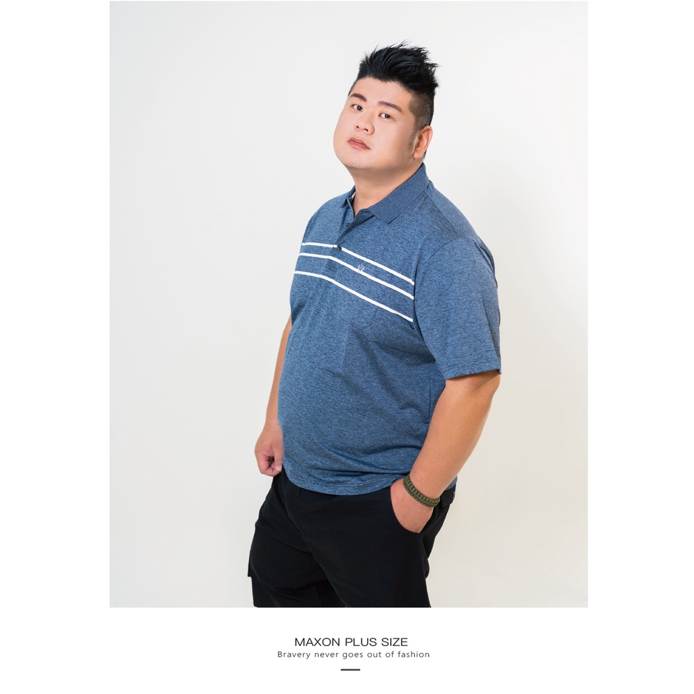 【MAXON大尺碼】台灣製湖藍條紋排汗彈性POLO衫XL~6L加大尺碼 免運 91776-56XL|2L|3L|4L|5L|6LPolo ShirtsMAXON馬森大尺碼專賣