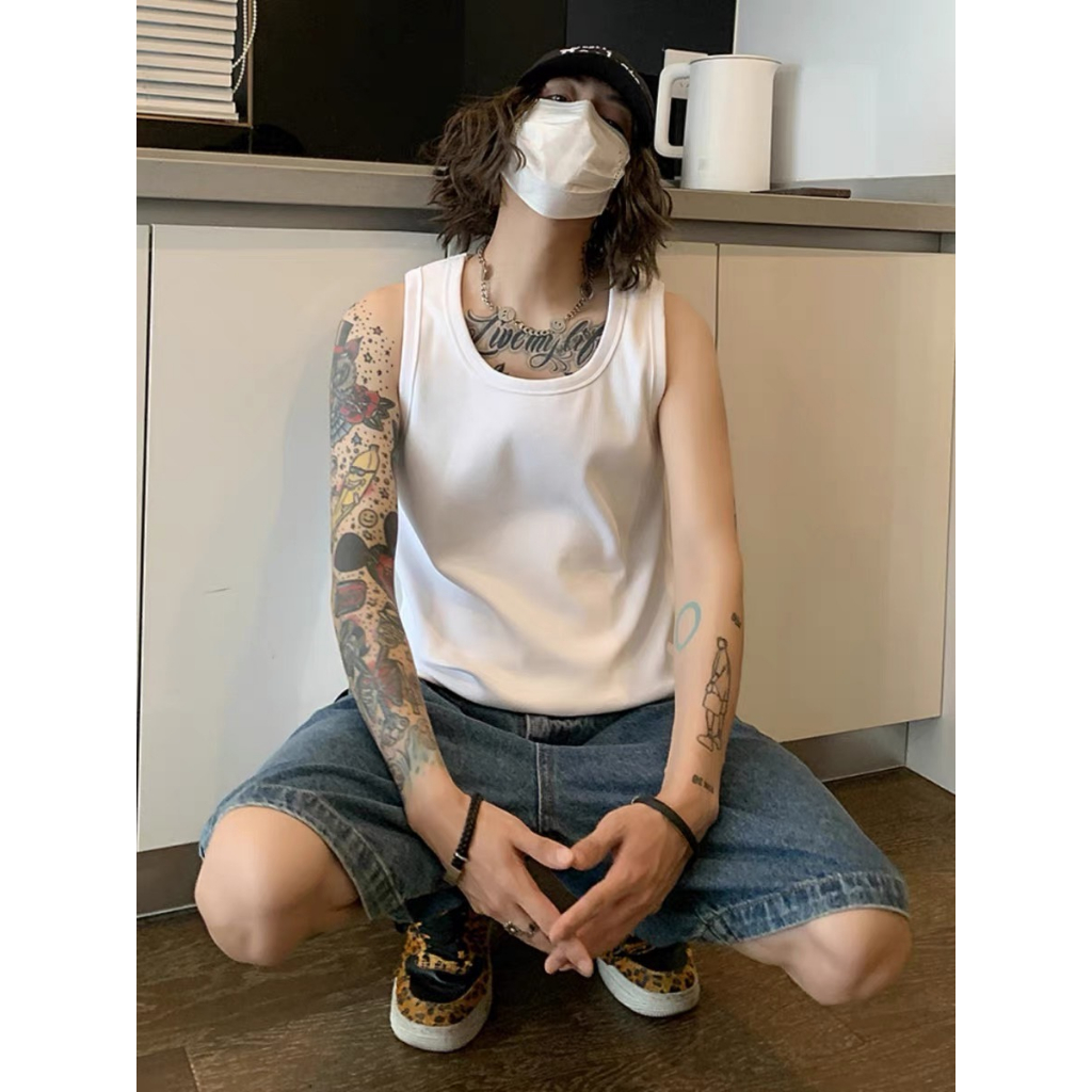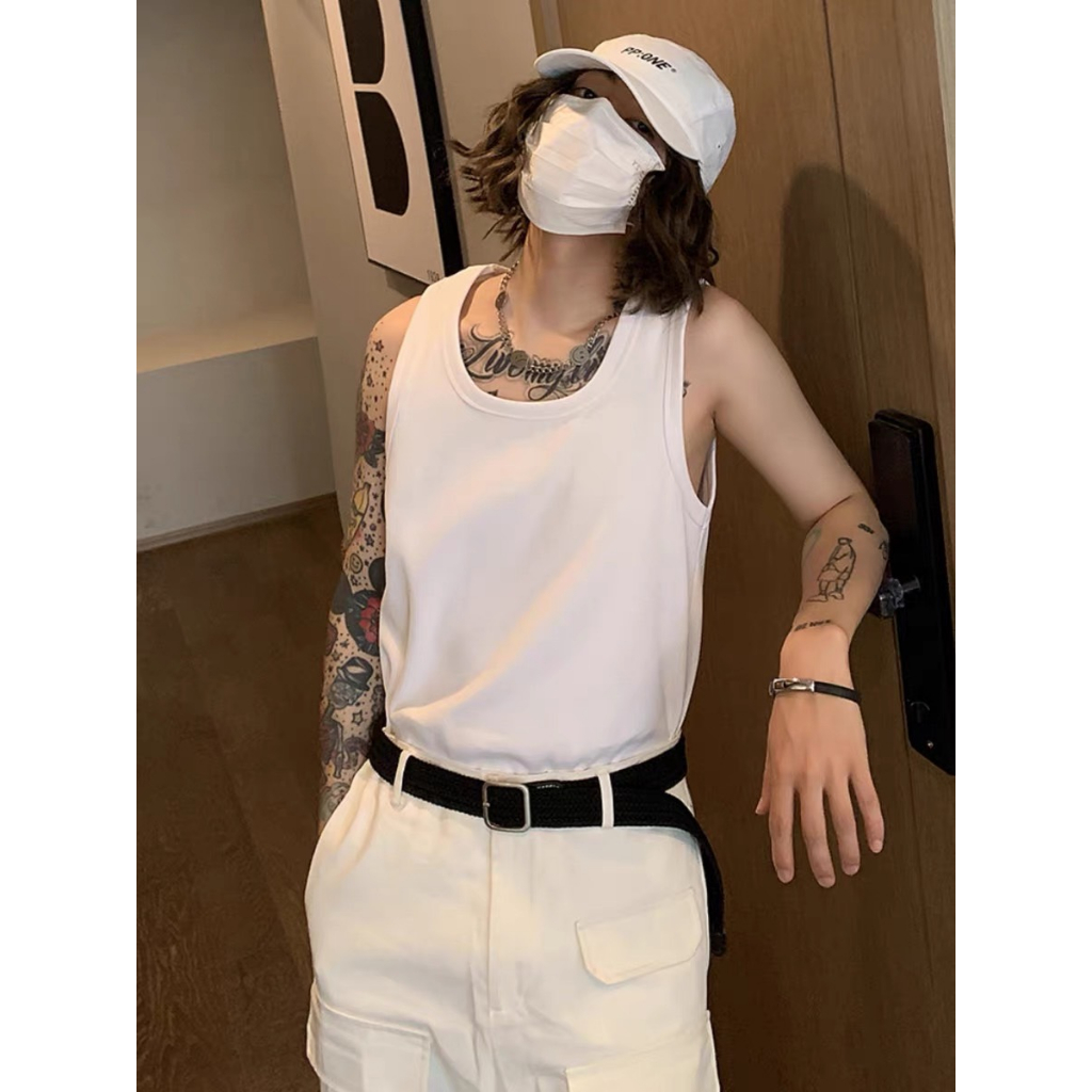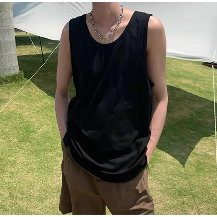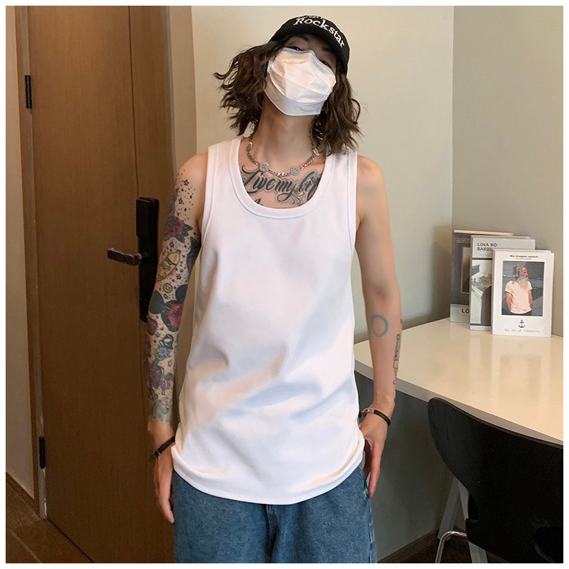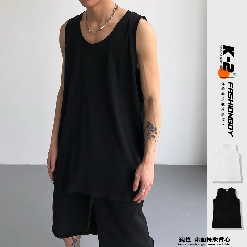 【K-2】韓國 長版背心 平口 素面 素色 純棉 背心 內搭背心 寬鬆背心 韓國背心 運動背心 情侶 吊嘎【K358】白色|黑色VestsK-2 Fashionboy