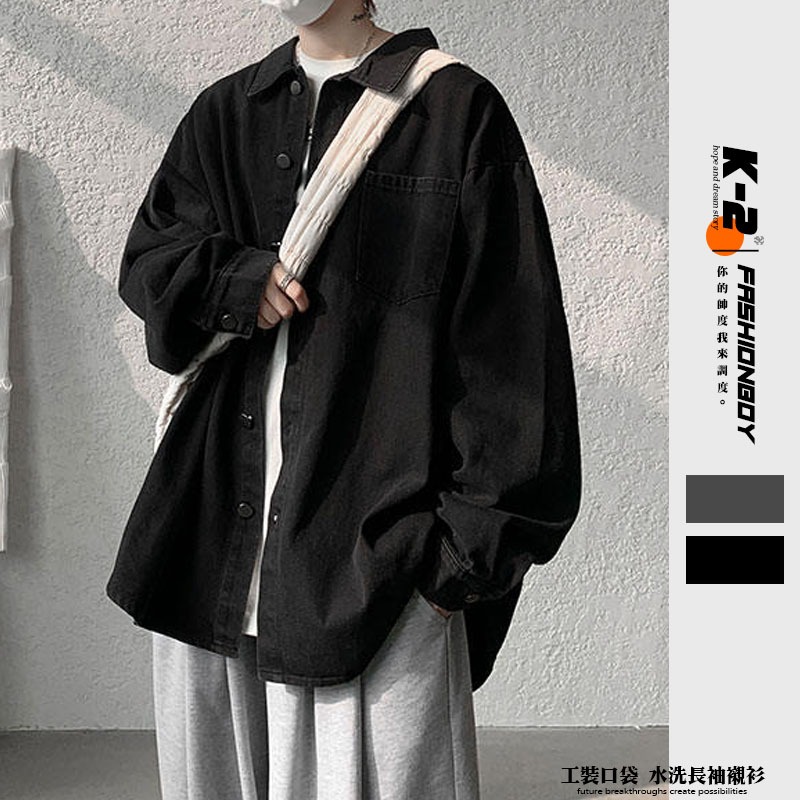 【K-2】CITYBOY 水洗襯衫 工裝襯衫 素面 水洗 街頭 穿搭 襯衫 長袖襯衫 口袋襯衫 K2 文青【D6919】深灰色,M|深灰色,L|深灰色,XL|深灰色,XXL|黑色,M|黑色,L|黑色,XL|黑色,XXLShirtsK-2 Fashionboy