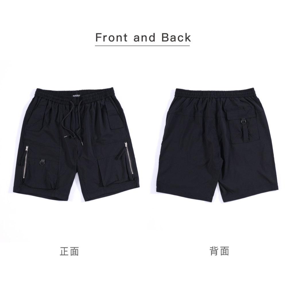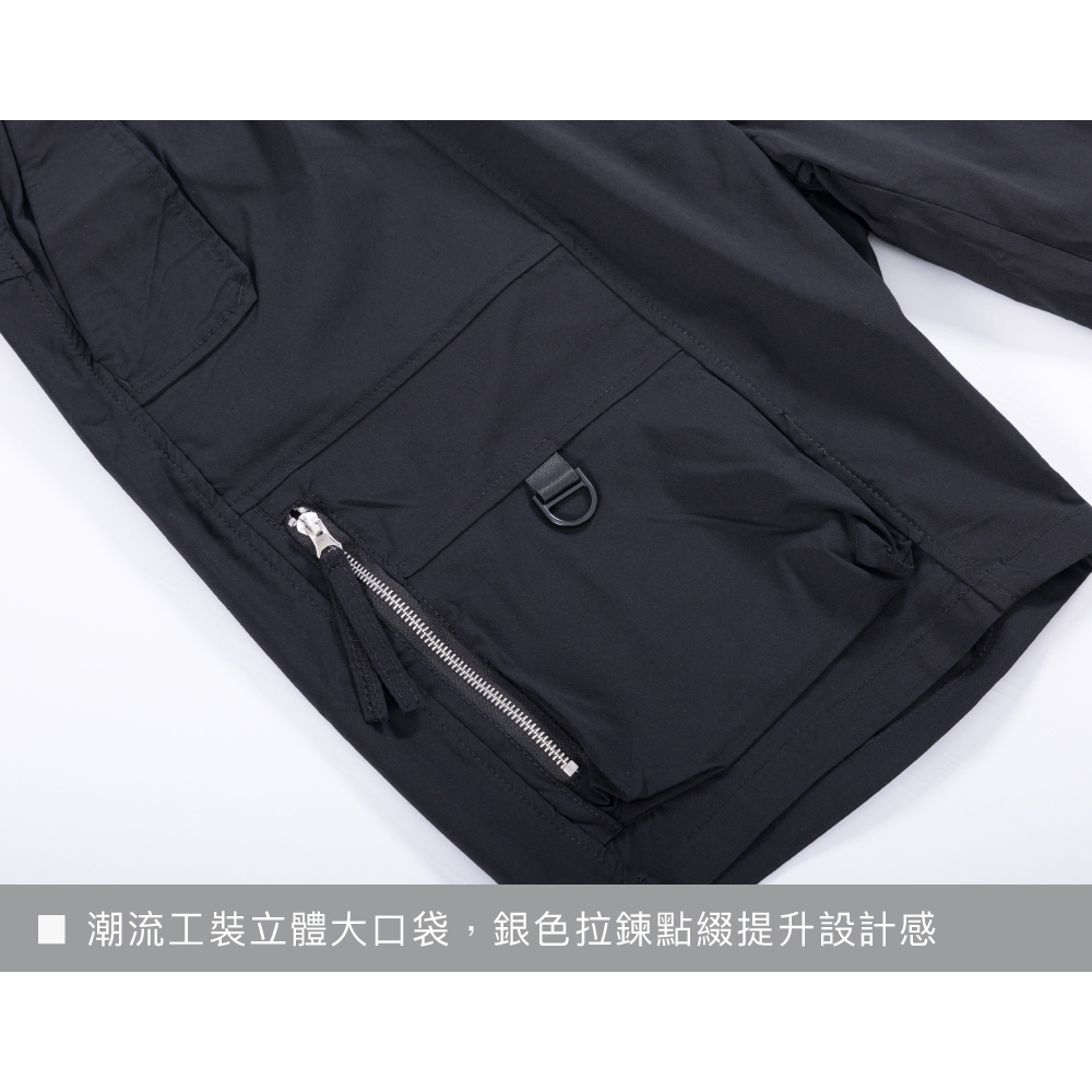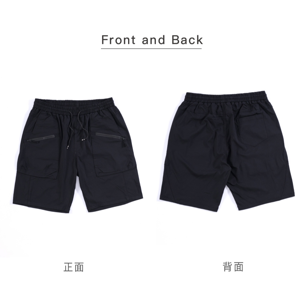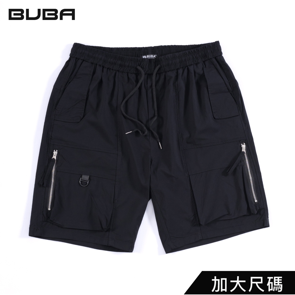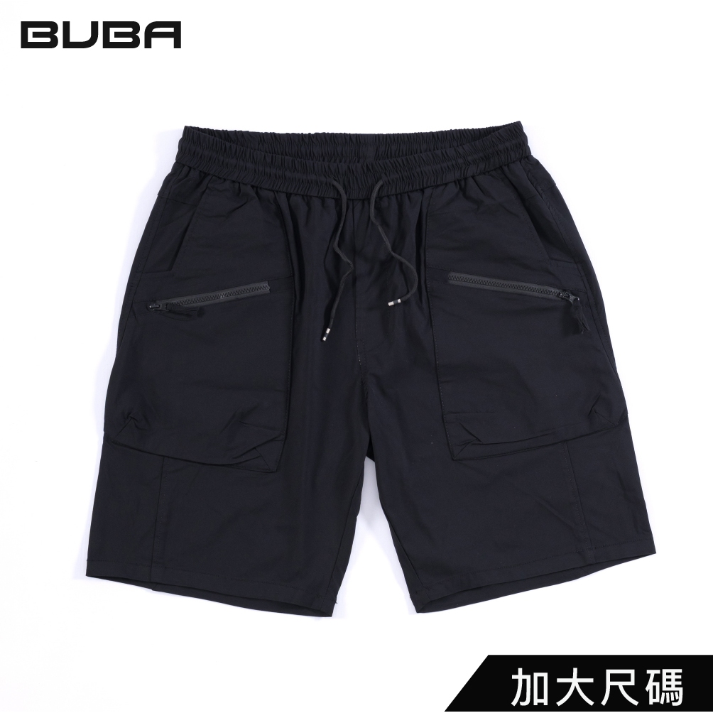 【BUBA大尺碼】2L~5L黑色雙拉鍊大口袋彈性鬆緊腰抽繩短褲11559-88