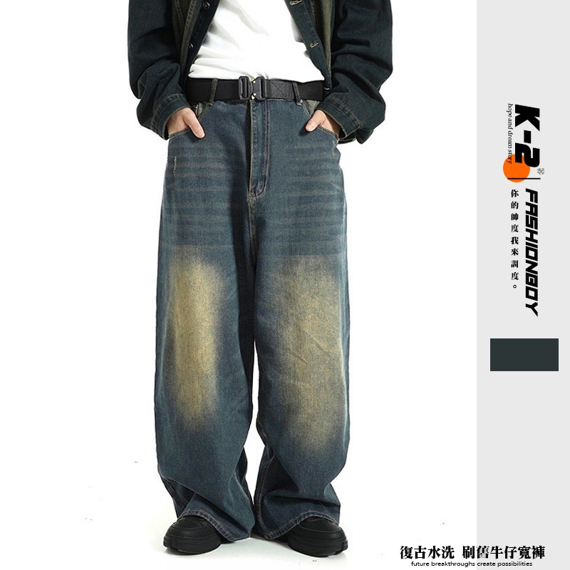 【K-2】復古水洗 刷舊水仔褲 寬褲 牛仔褲 Y2K 水洗 刷舊 復古 闊腿褲 寬褲 長褲 褲子 K2【K816】XXL|S|M|L|XLK-2 Fashionboy