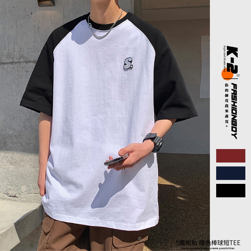 【K-2】簡約百搭 S字母 魔術貼 撞色棒球短T 短袖上衣 情侶 休閒 穿搭 寬鬆落肩 K2【J5020】黑,L|黑,XL|黑,XXL|藍,M|藍,L|藍,XL|藍,XXL|紅,M|紅,L|紅,XL|紅,XXL|黑,MT-ShirtsK-2 Fashionboy