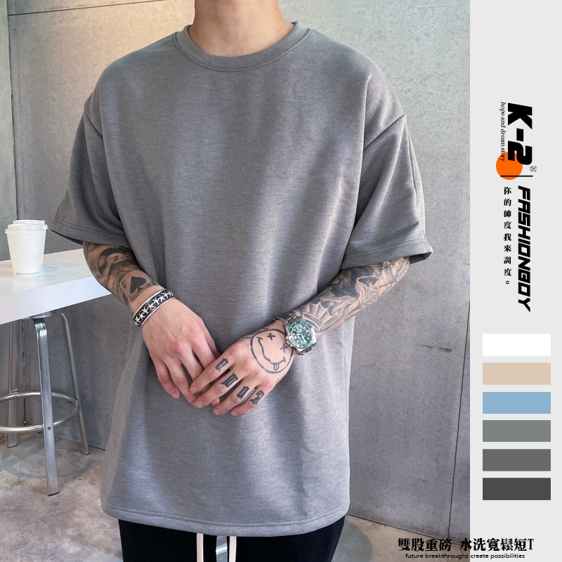 【K-2】CITYBOY 水洗短T 雙股 水洗 重磅 短T 五分袖 寬鬆 上衣 衣服 情侶 素T 素踢【K454】奶茶杏|寶寶藍|淺灰色|深灰色|岩灰色T-ShirtsK-2 Fashionboy