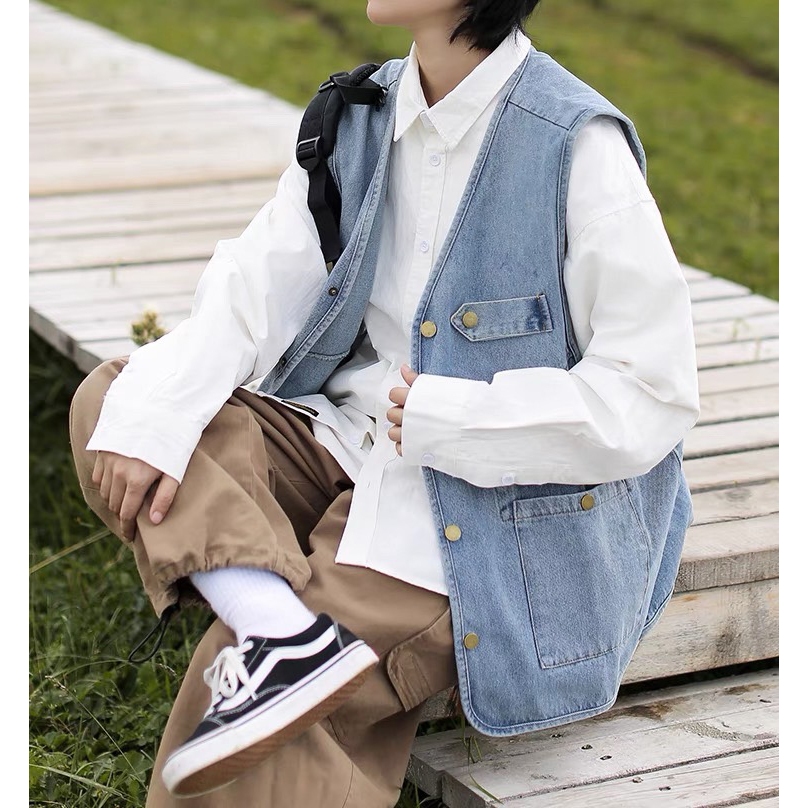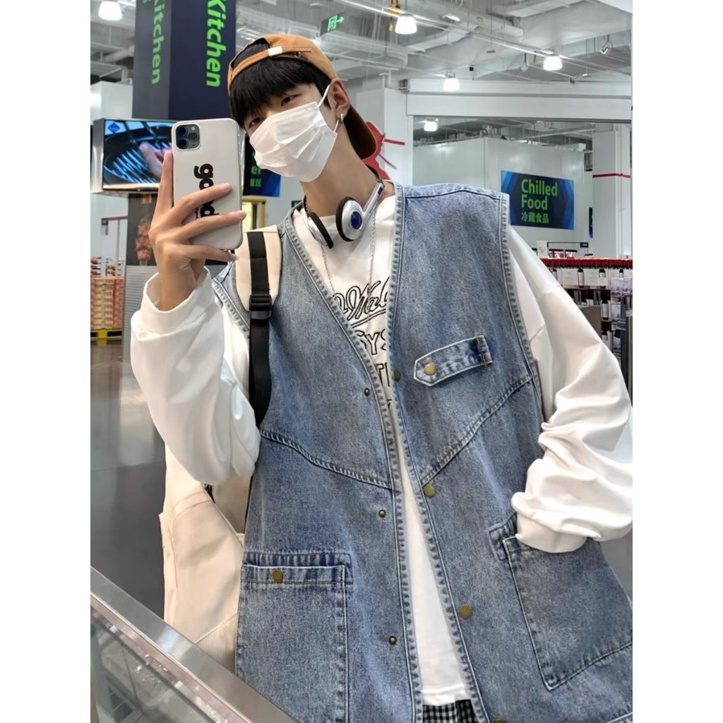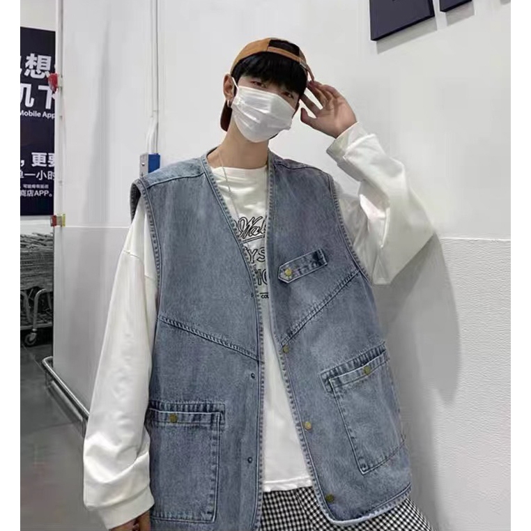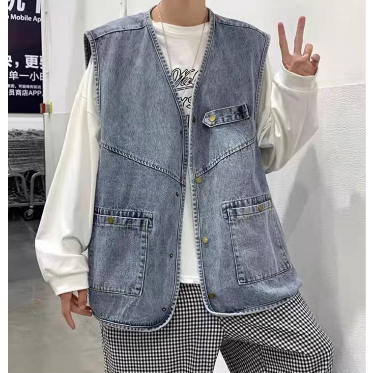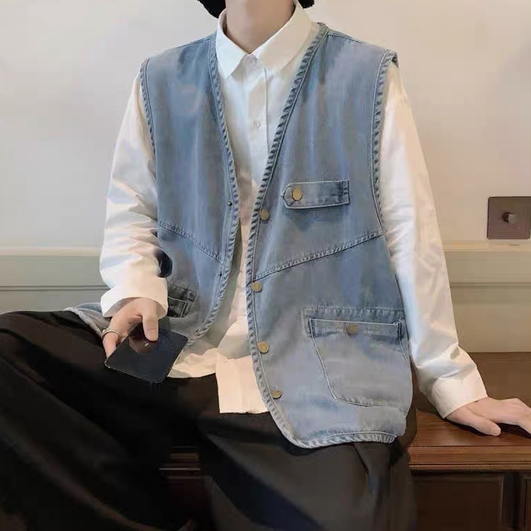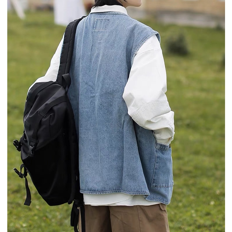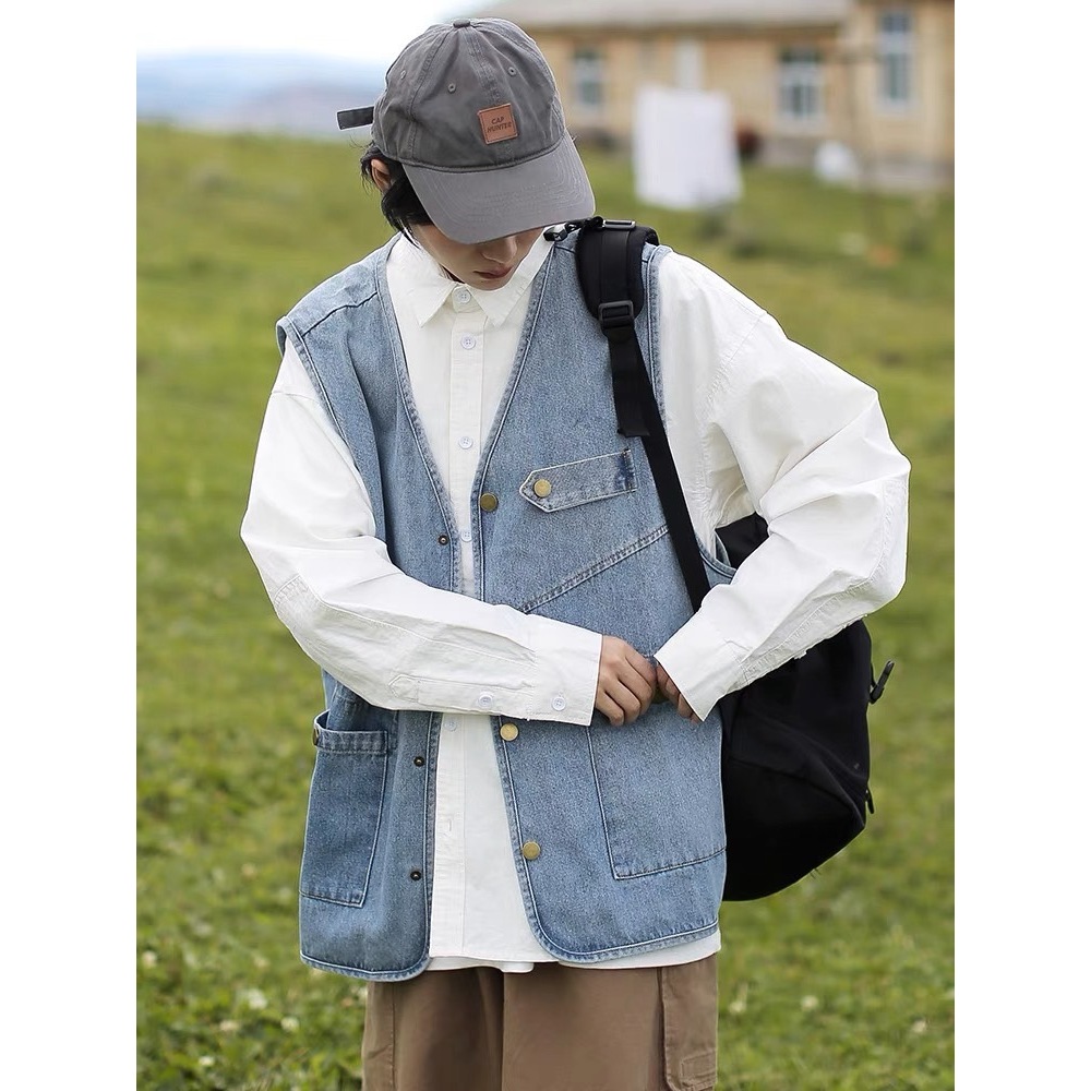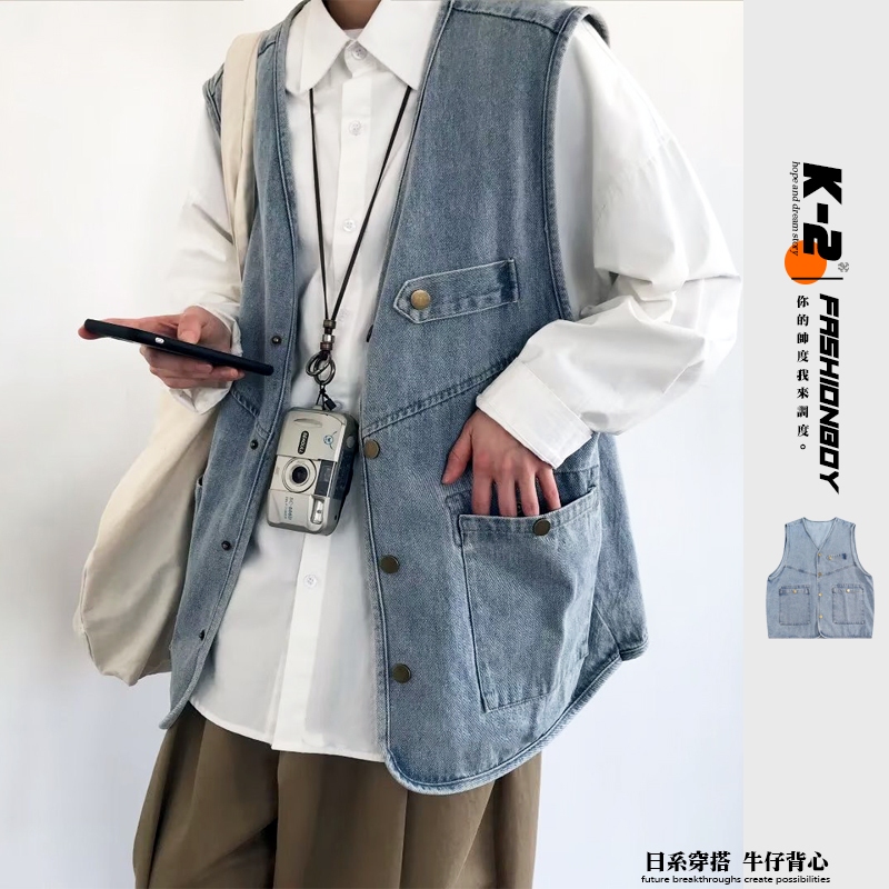 【K-2】日系穿搭 牛仔背心 日系工裝 CITYBOY 牛仔 背心 古著 街頭 穿搭 工裝背心 情侶【WM028】XXL|L|XLVestsK-2 Fashionboy