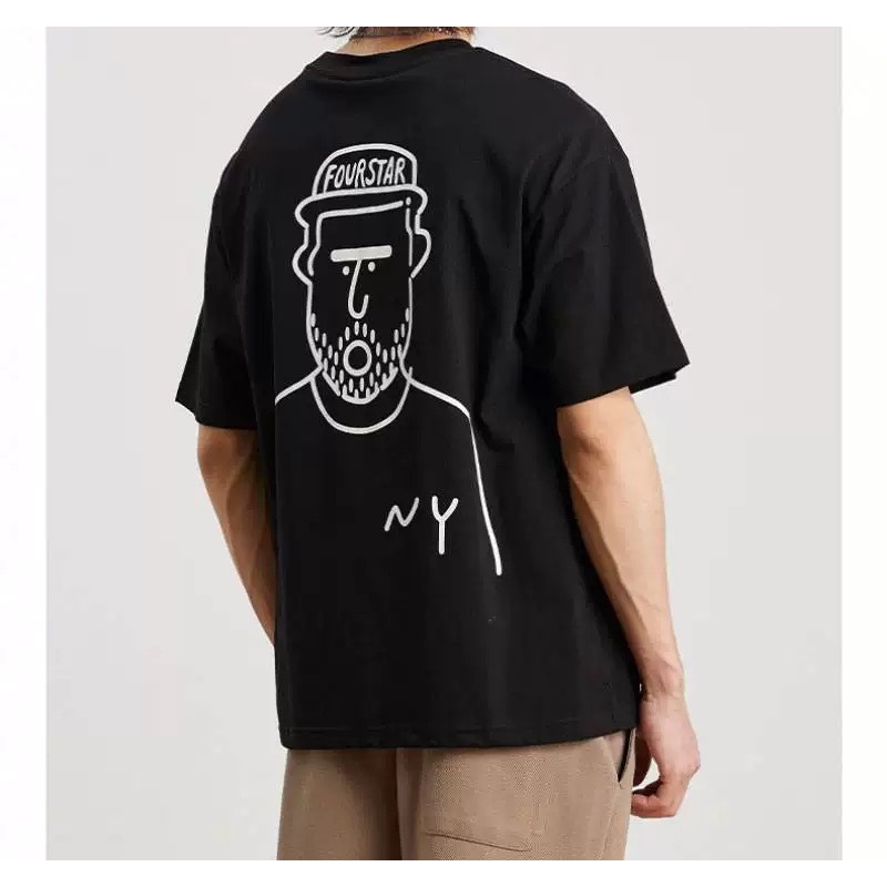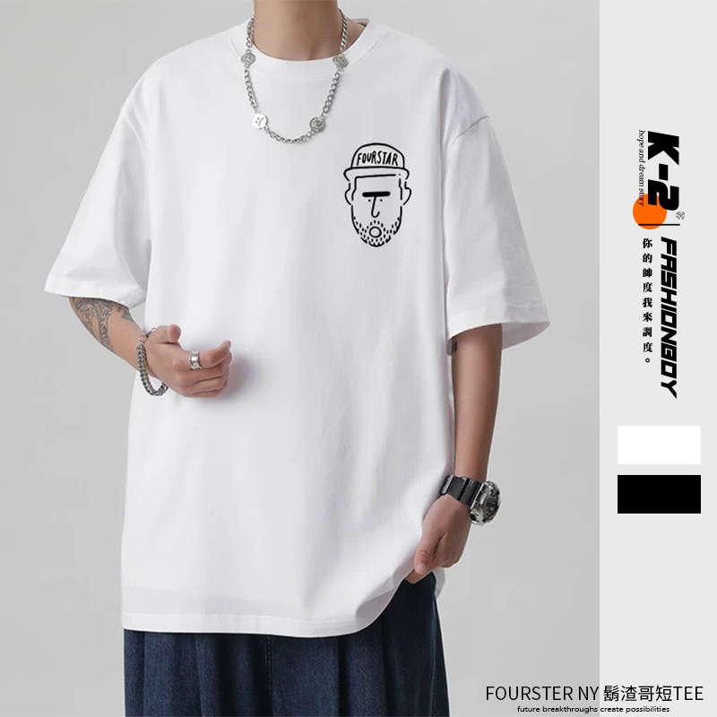 【K-2】FOURSTER NY 鬍渣哥 純棉短T 絡腮鬍 鬍子哥 手繪 塗鴉 卡通人物 棒球帽 短袖【JT2089】白色,M|白色,L|白色,XL|黑色,M|黑色,L|黑色,XLT-ShirtsK-2 Fashionboy