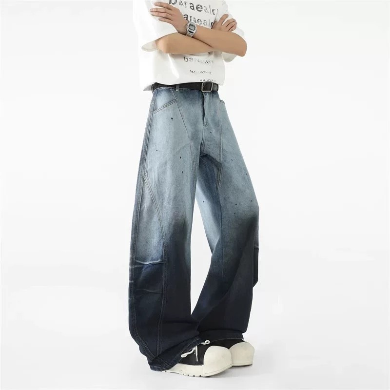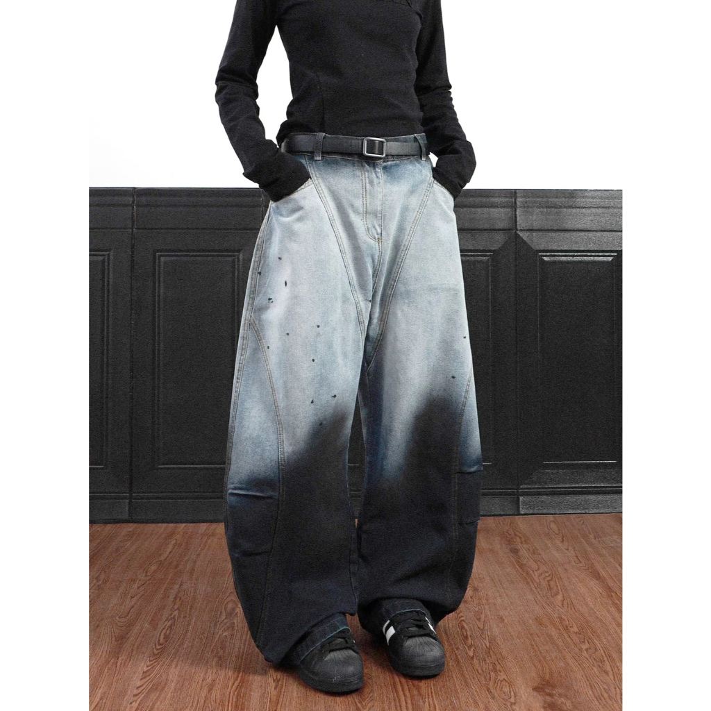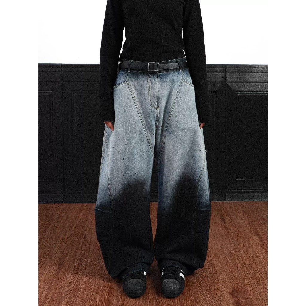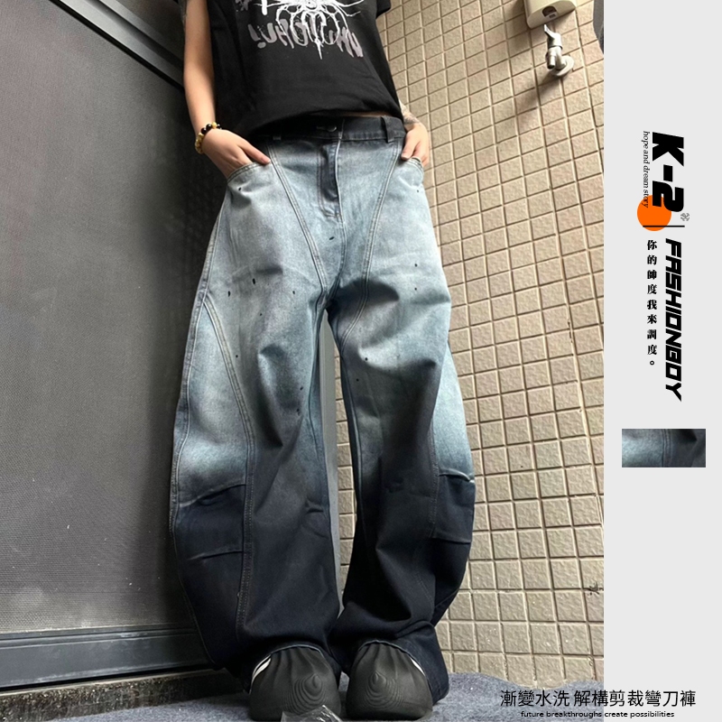【K-2】美式解構設計 漸變色水洗 特殊染色 闊腿彎刀褲 鐮刀褲 牛仔褲 寬褲 彎刀褲 復古 Y2K K2【J6680】M|L|XL|XXLK-2 Fashionboy