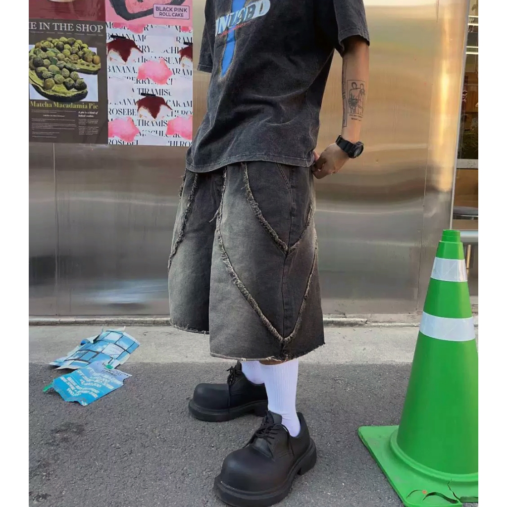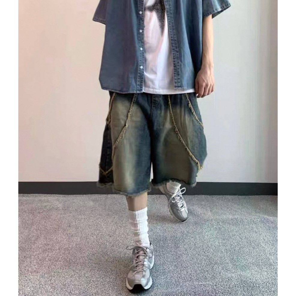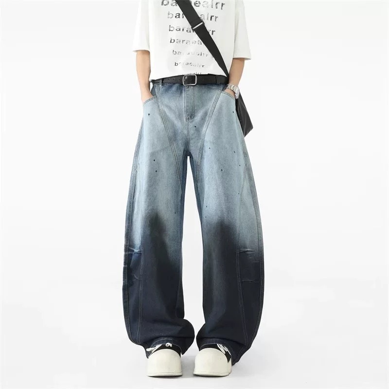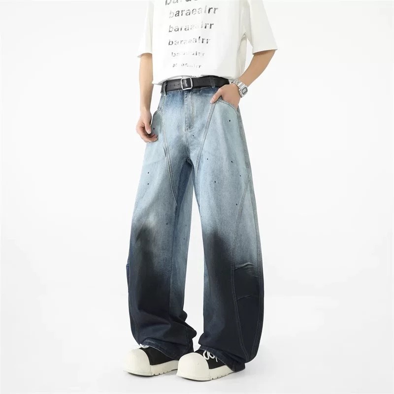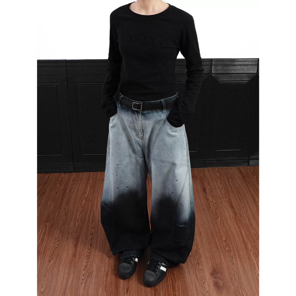 【K-2】美式解構設計 漸變色水洗 特殊染色 闊腿彎刀褲 鐮刀褲 牛仔褲 寬褲 彎刀褲 復古 Y2K K2【J6680】M|L|XL|XXLK-2 Fashionboy