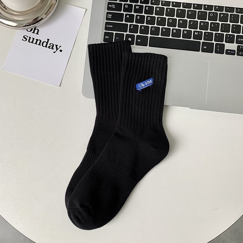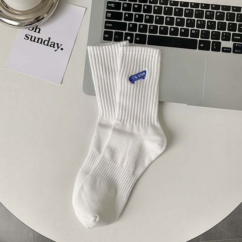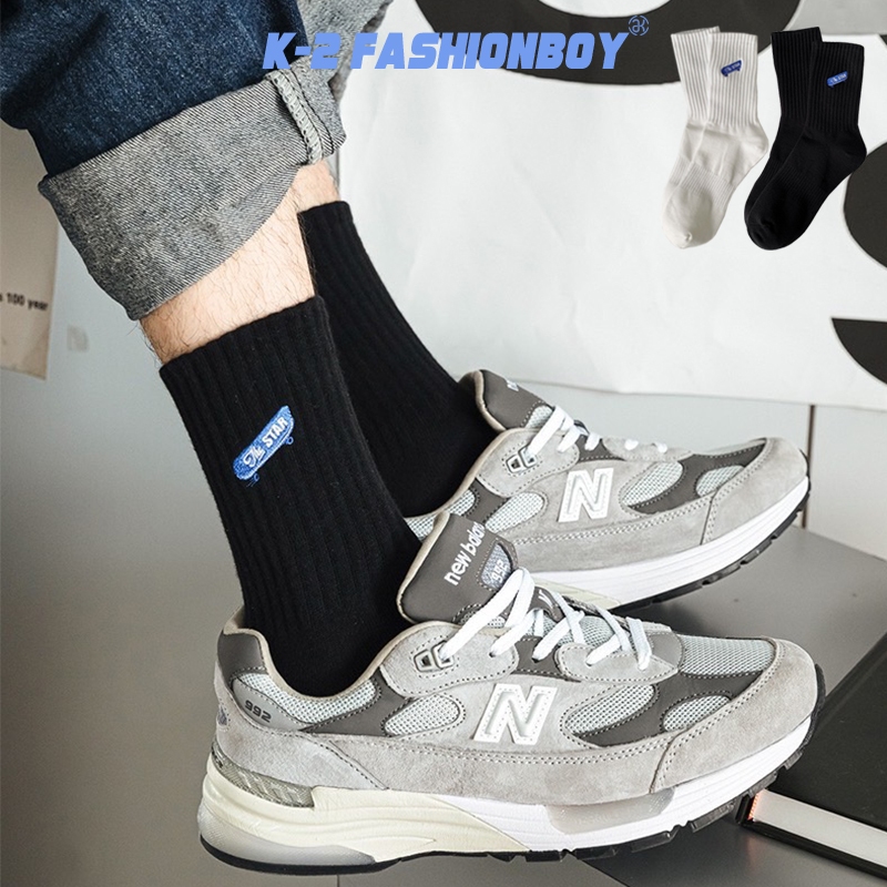 【K-2】STAR 刺繡滑板 棉襪 長襪 高筒襪 穿搭 CITYBOY 襪子 滑板 刺繡 襪 純棉 男女襪【KM144】白色|黑色K-2 Fashionboy