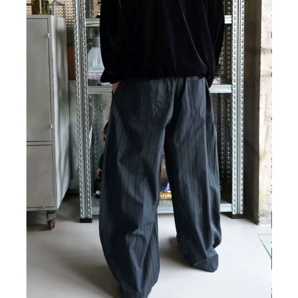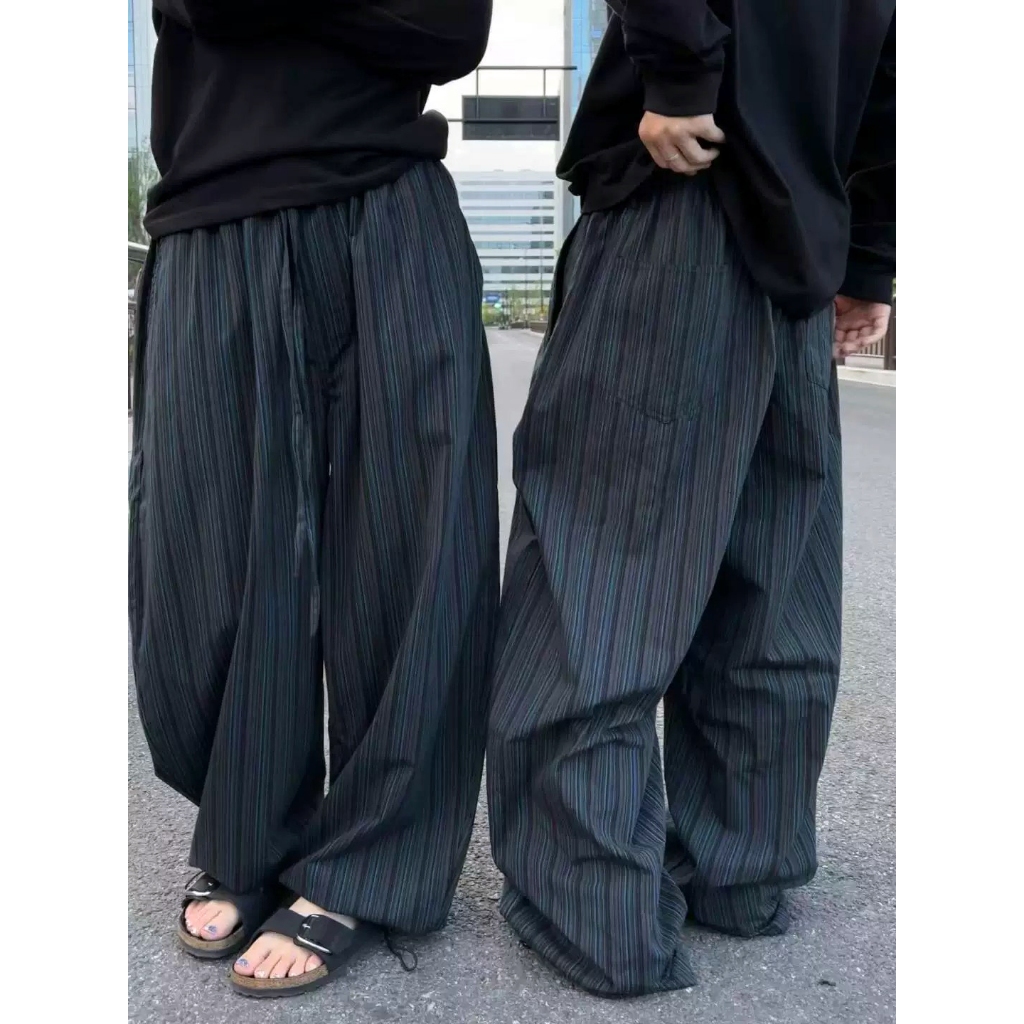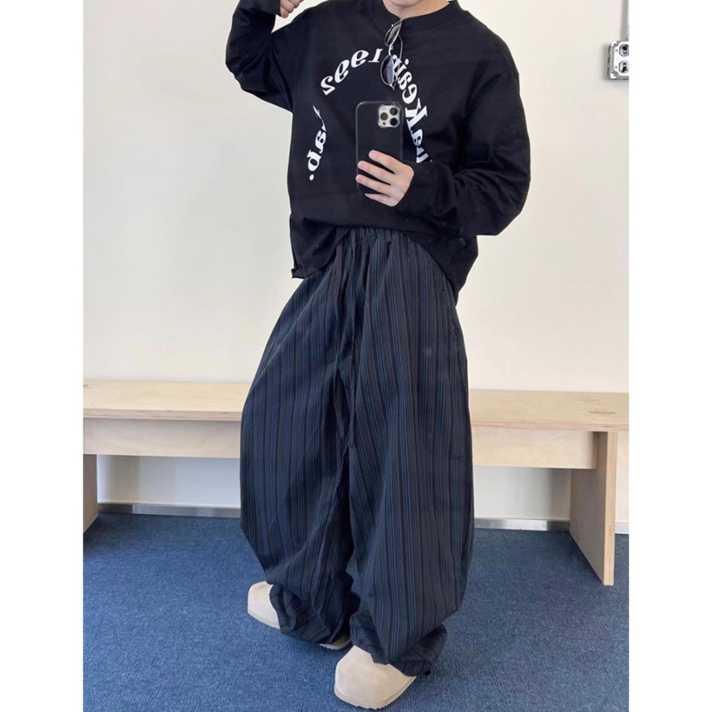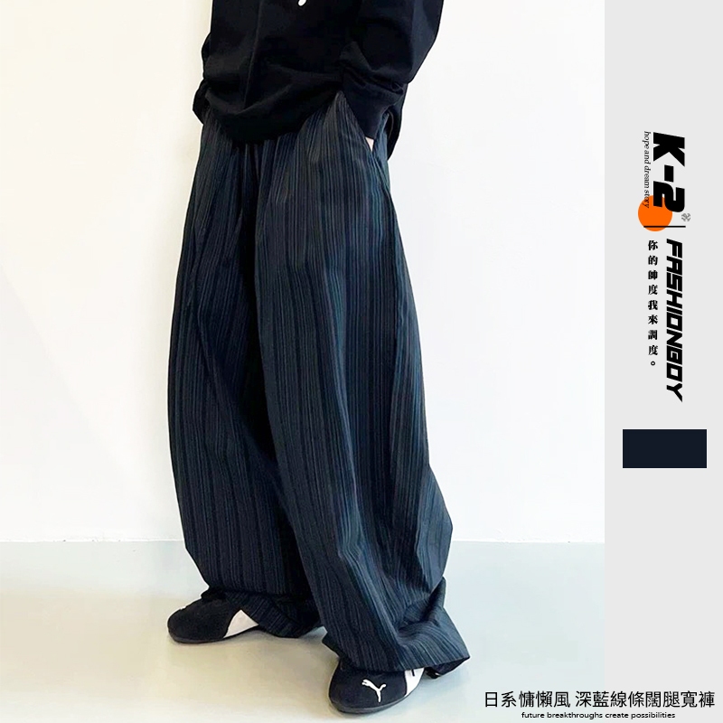 【K-2】日系慵懶風 深藍線條 闊腿寬褲 闊腿褲 寬褲 鹼型 燈籠褲 落地 復古 休閒寬褲 條紋長褲 K2【JK186】M|L|XL|XXLPantsK-2 Fashionboy