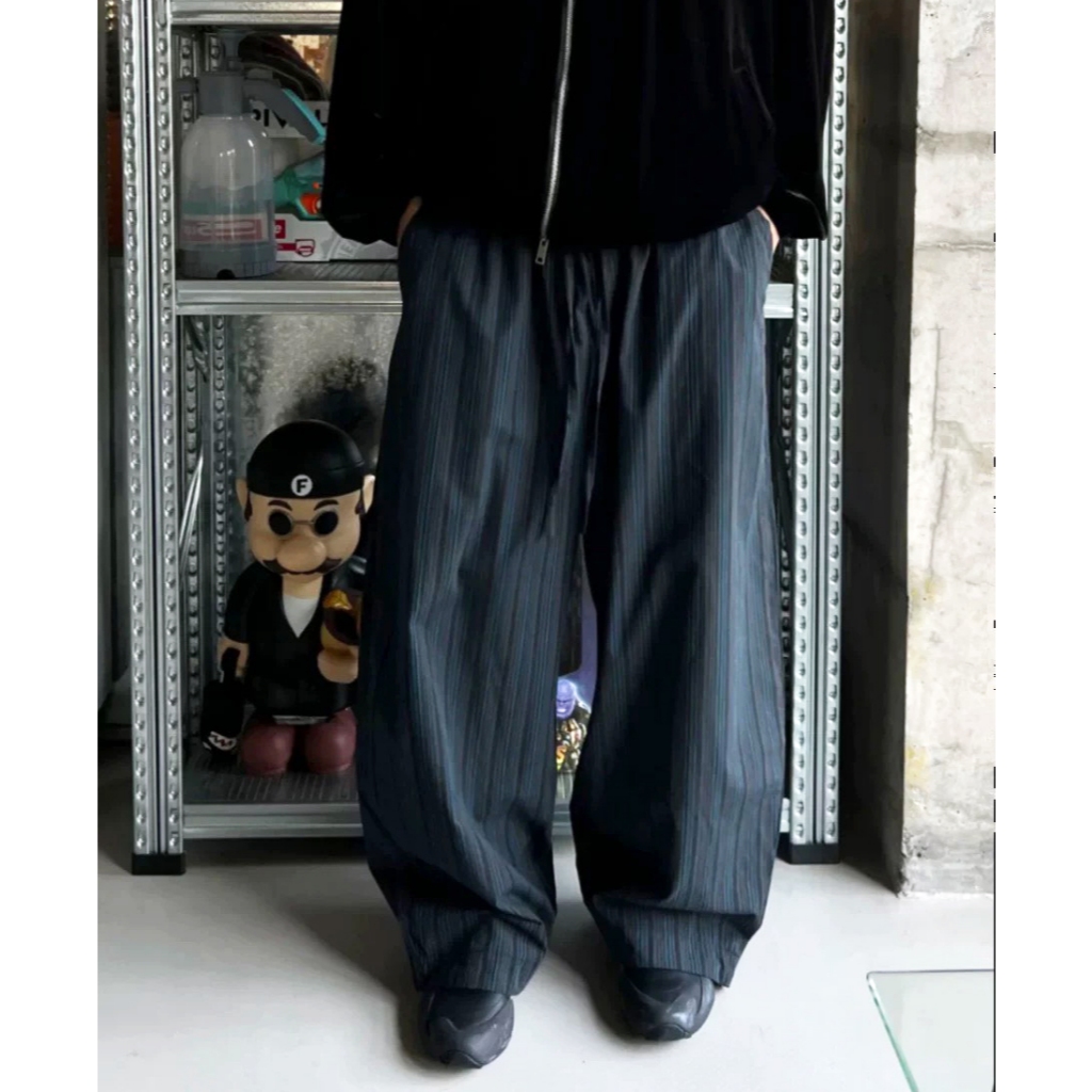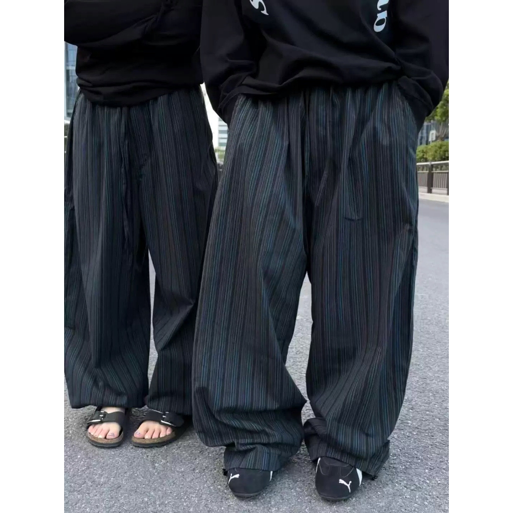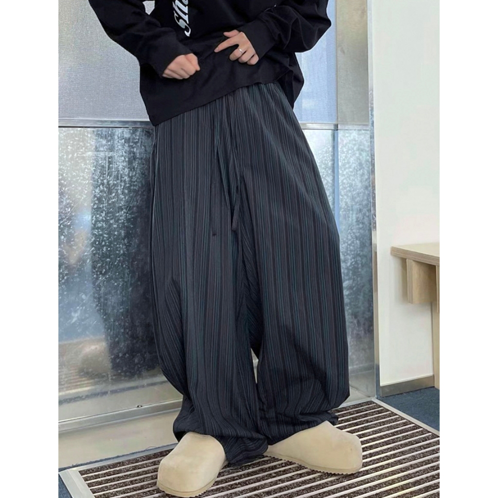 【K-2】日系慵懶風 深藍線條 闊腿寬褲 闊腿褲 寬褲 鹼型 燈籠褲 落地 復古 休閒寬褲 條紋長褲 K2【JK186】M|L|XL|XXLPantsK-2 Fashionboy