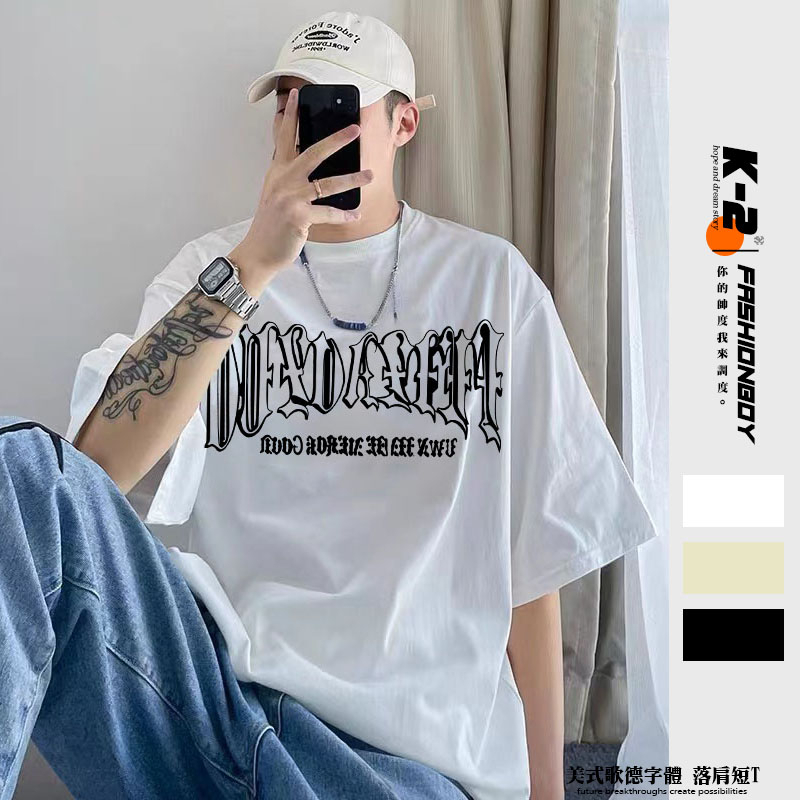 【K-2】美式 歌德字體 落肩短T 短袖上衣 簍空 英文字體 五分袖 簡約 男女不拘 百搭款【A6576】黑色,M|黑色,XL|白色,L|白色,XL|白色,XXL|杏色,XXL|黑色,L|黑色,XXL|白色,M|杏色,M|杏色,L|杏色,XLT-ShirtsK-2 Fashionboy