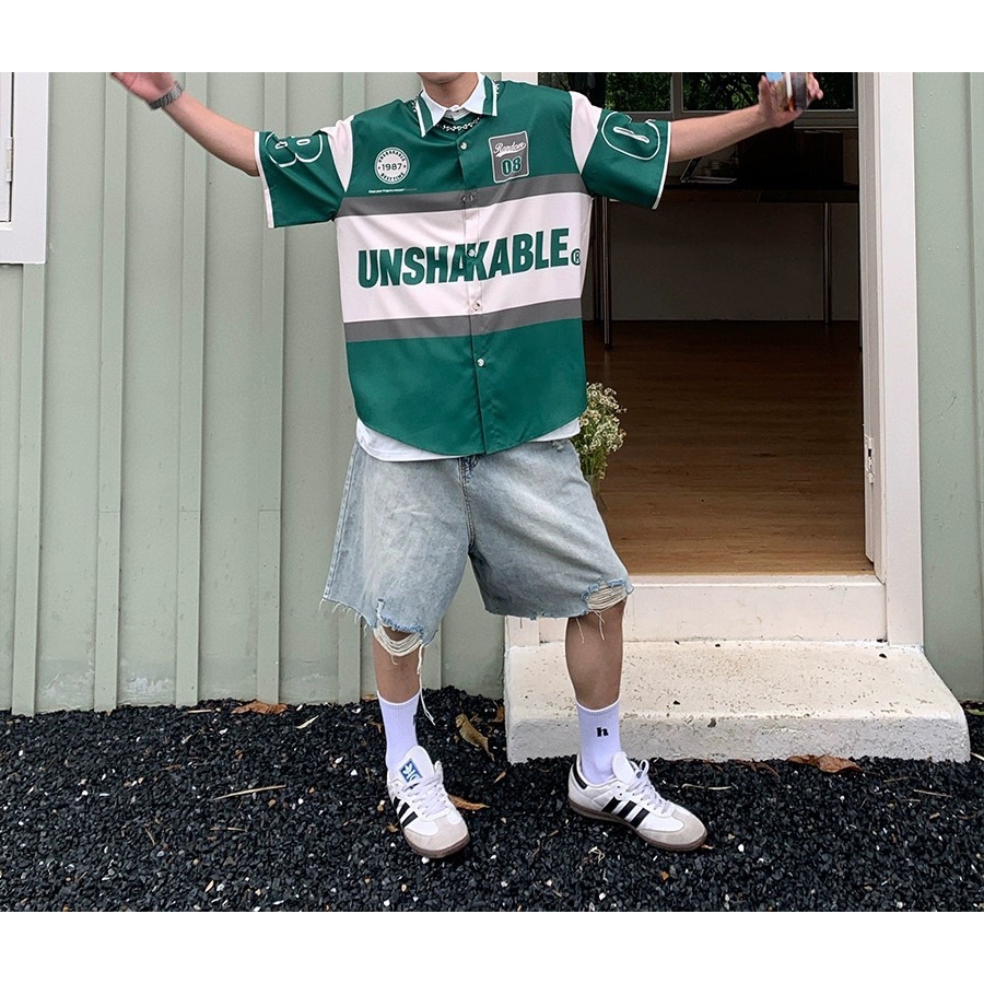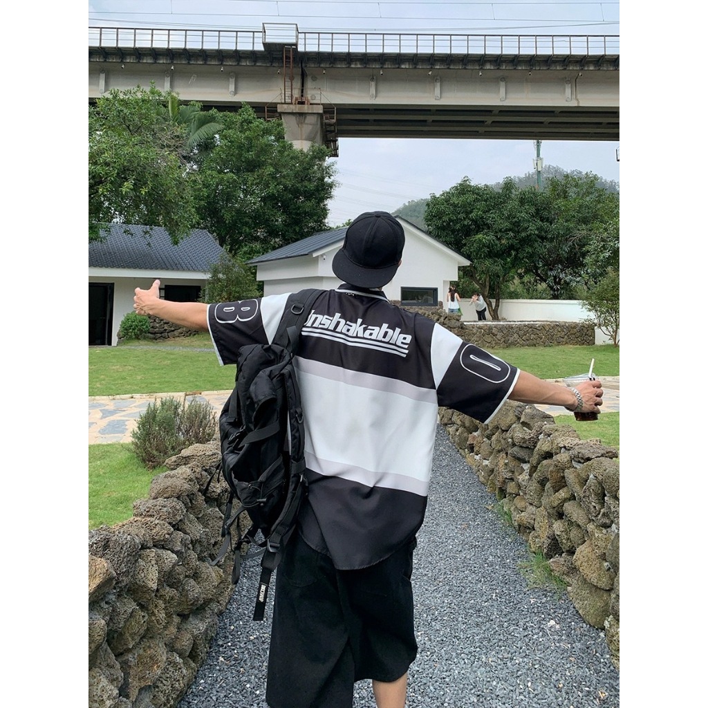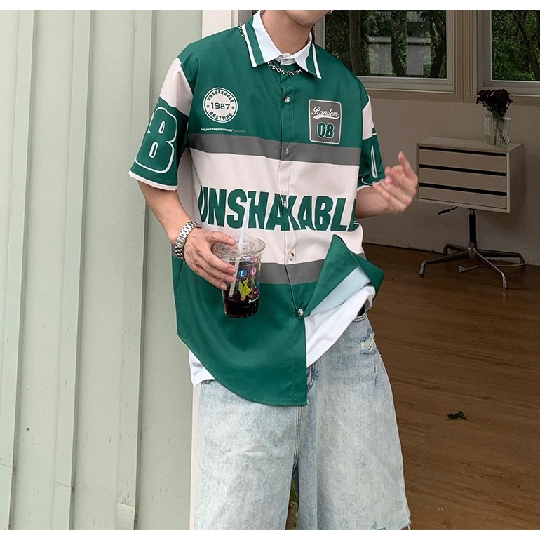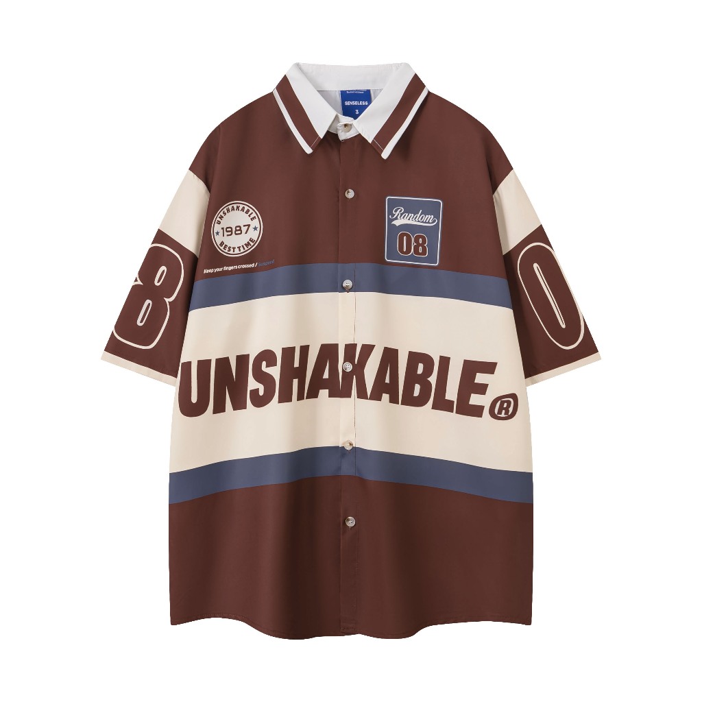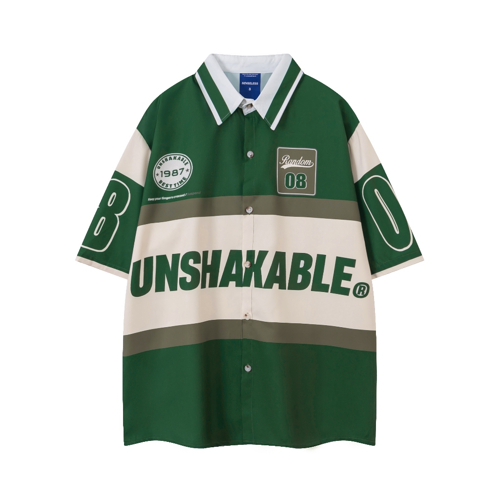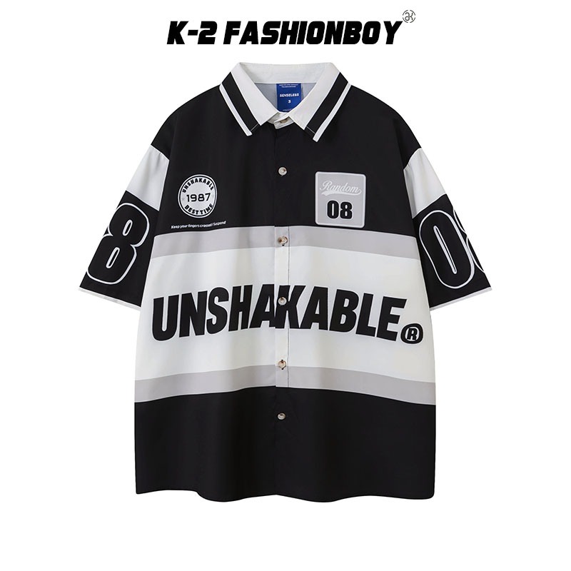 【K-2】UNSHAKABLE 1987 撞色襯衫 賽車風 短袖襯衫 穿搭 帥氣 潮流 街舞 男女不拘【HSE12】黑,M|黑,L|黑,XL|綠,M|綠,L|綠,XL|咖,M|咖,L|咖,XLShirtsK-2 Fashionboy