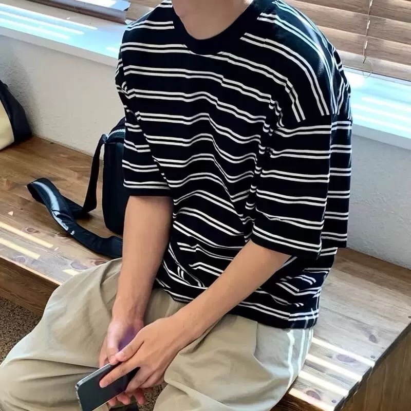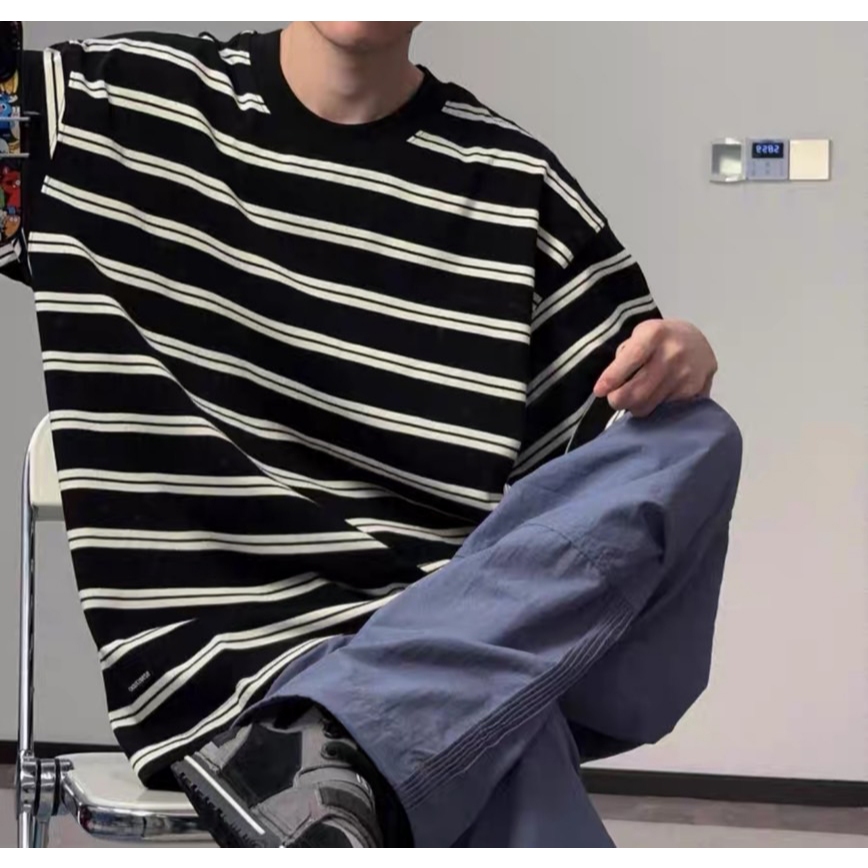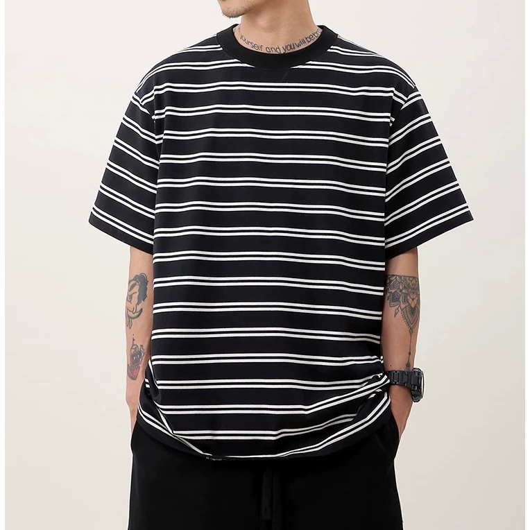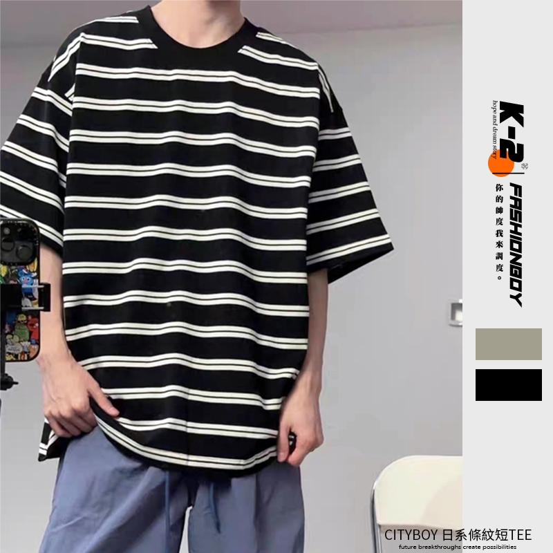 【K-2】CITYBOY 日系條紋短TEE 經典不敗 黑白條紋 休閒穿搭 條紋T 日系風 落肩 純棉 短T【KN12】黑白色,M|黑白色,L|卡其色,M|卡其色,LT-ShirtsK-2 Fashionboy