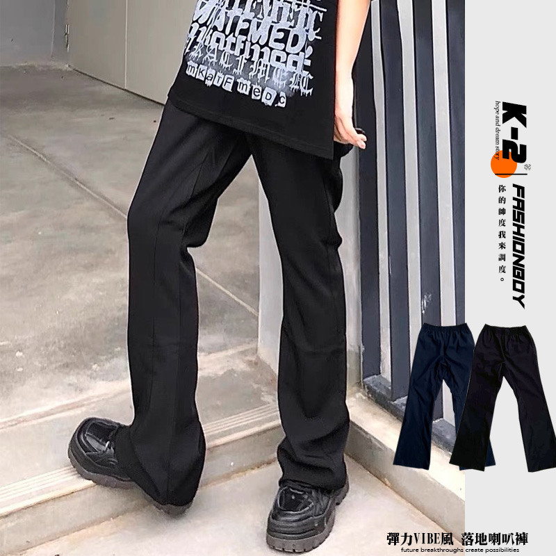 【K-2】彈力 VIBE風 落地 寬鬆 喇叭長褲 彈性 舒適 簡約穿搭 潮流 直筒長褲【Z88814】黑色,L|黑色,XL|深藍色,M|深藍色,L|深藍色,XL|黑色,MPantsK-2 Fashionboy