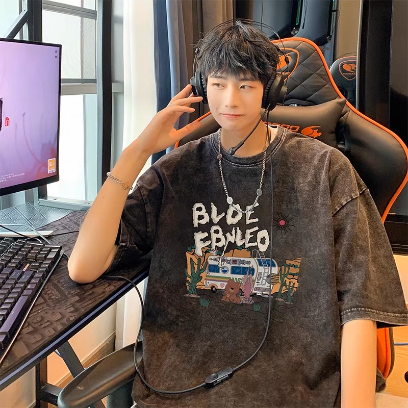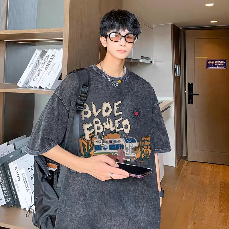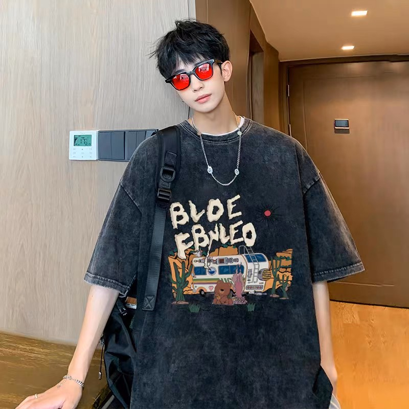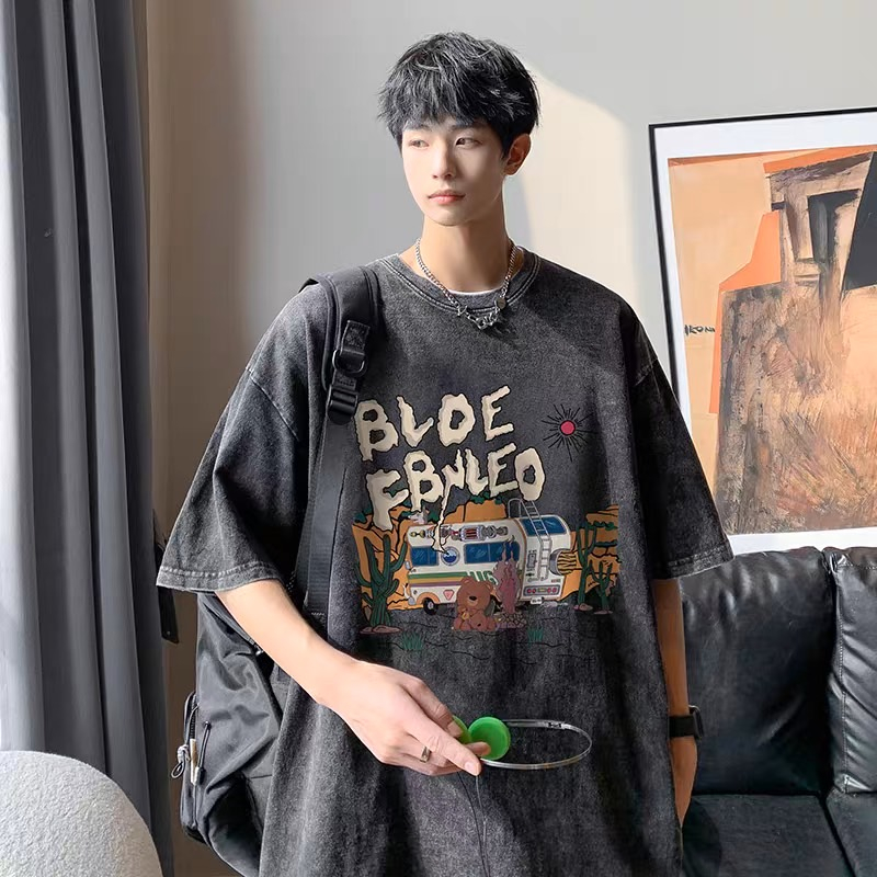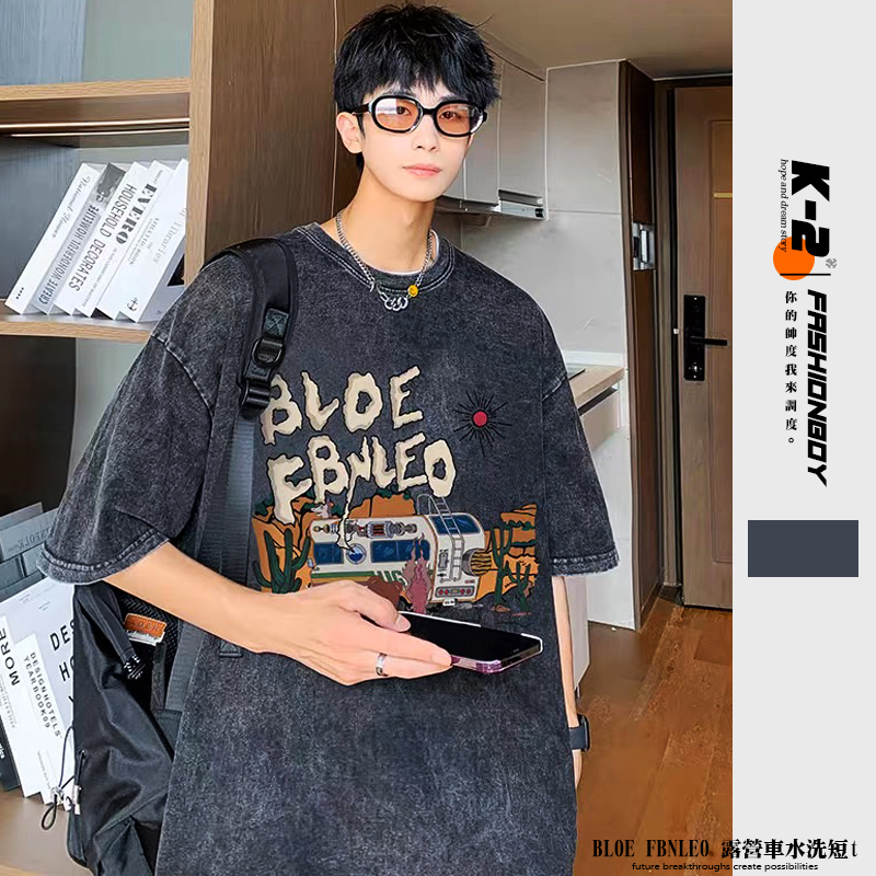 【K-2】BLOE FBNLEO 露營車 沙漠 仙人掌 古著 水洗T 落肩 寬鬆 情侶 露營 水洗短T【KC628】M|L|XLT-ShirtsK-2 Fashionboy