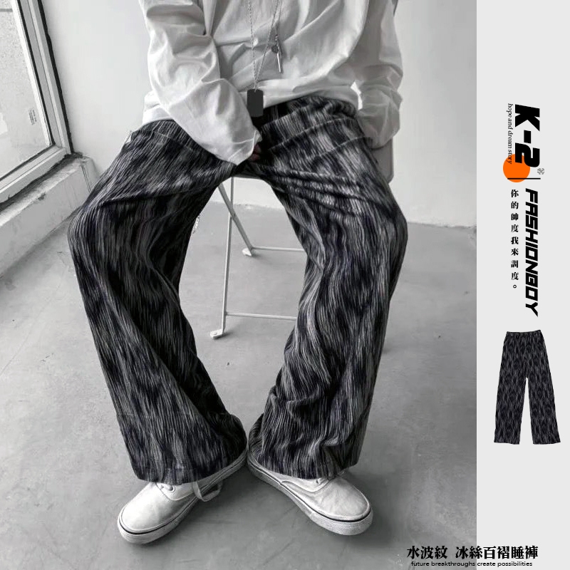 【K-2】衝量款 潮流睡褲 水波紋 百摺褲 渲染 直筒褲 TRAP 冰絲 柔軟 長褲 褲子 情侶 睡褲 Y2K【K31】M|L|XL|XXLPantsK-2 Fashionboy