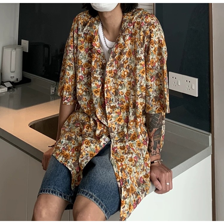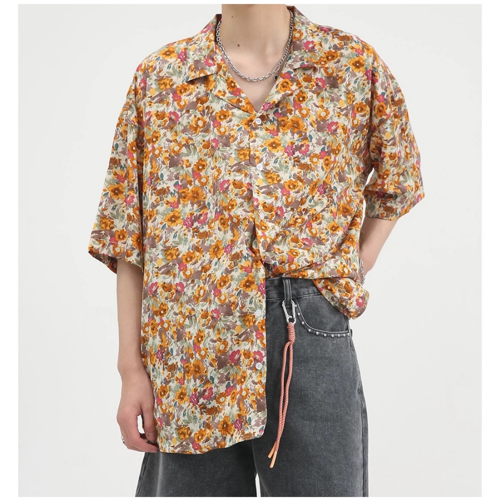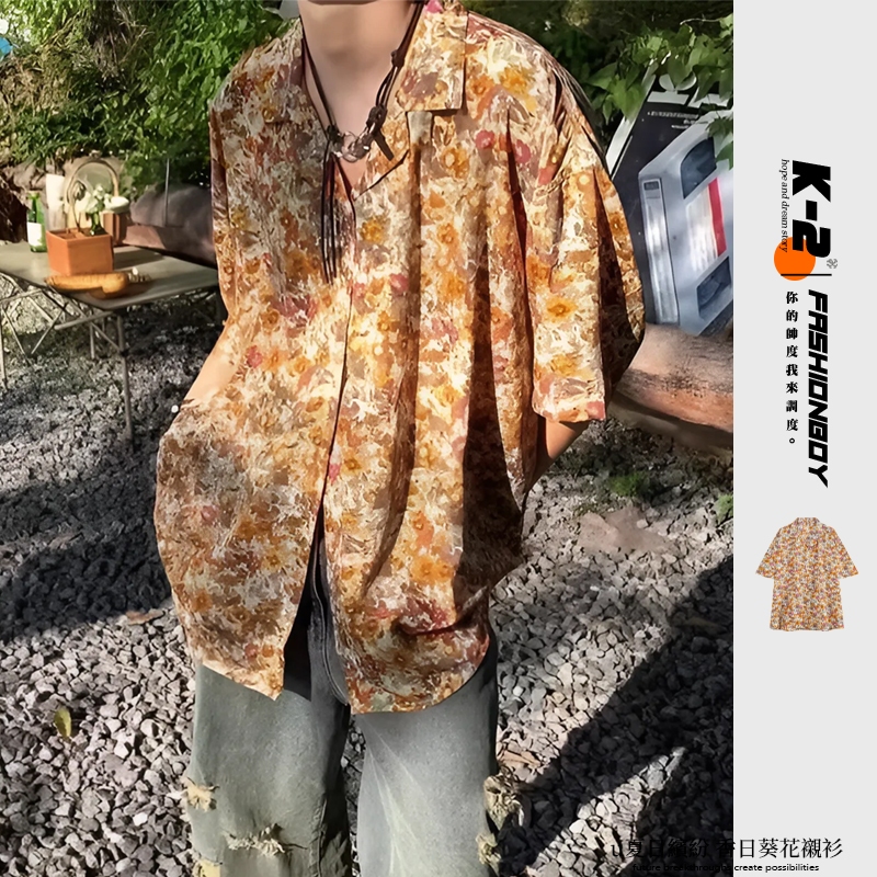 【K-2】日系休閒 油畫夏日葵 花卉 短袖襯衫 花襯衫 古巴襯衫 量感襯衫 Y2K 夏日 渡假 襯衫 K2【J2242】M|LShirtsK-2 Fashionboy