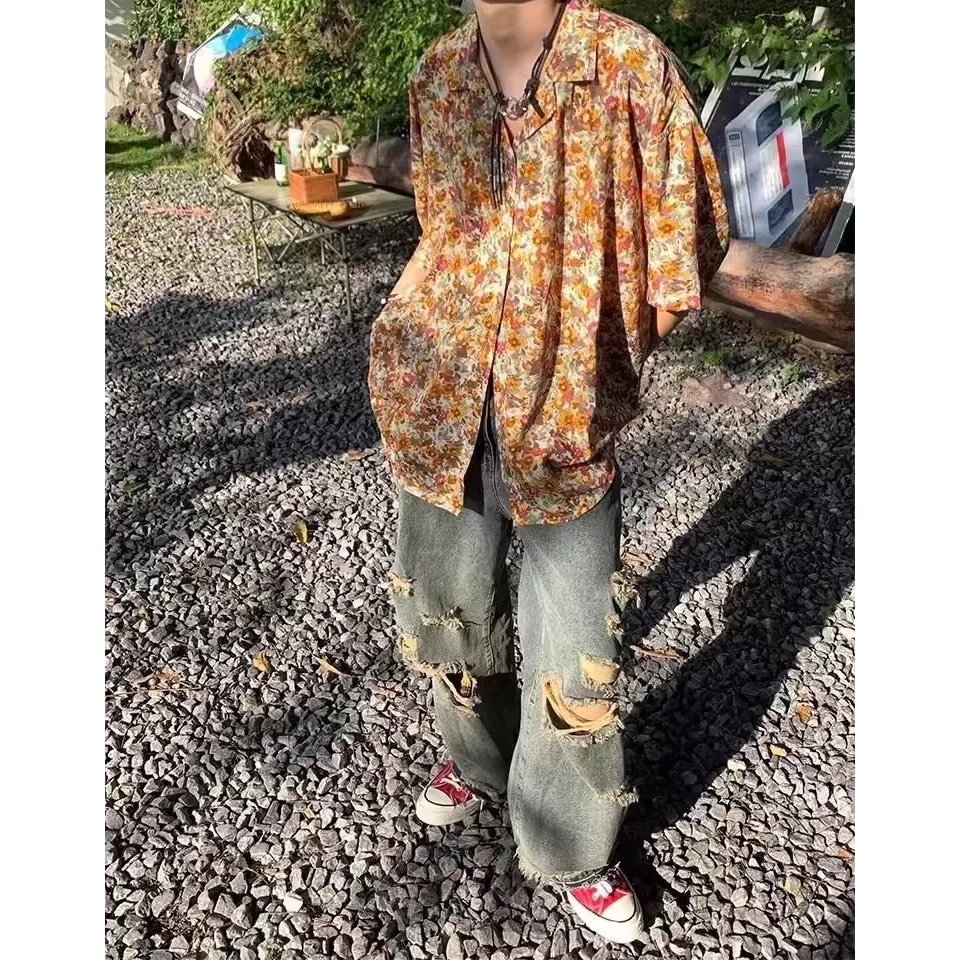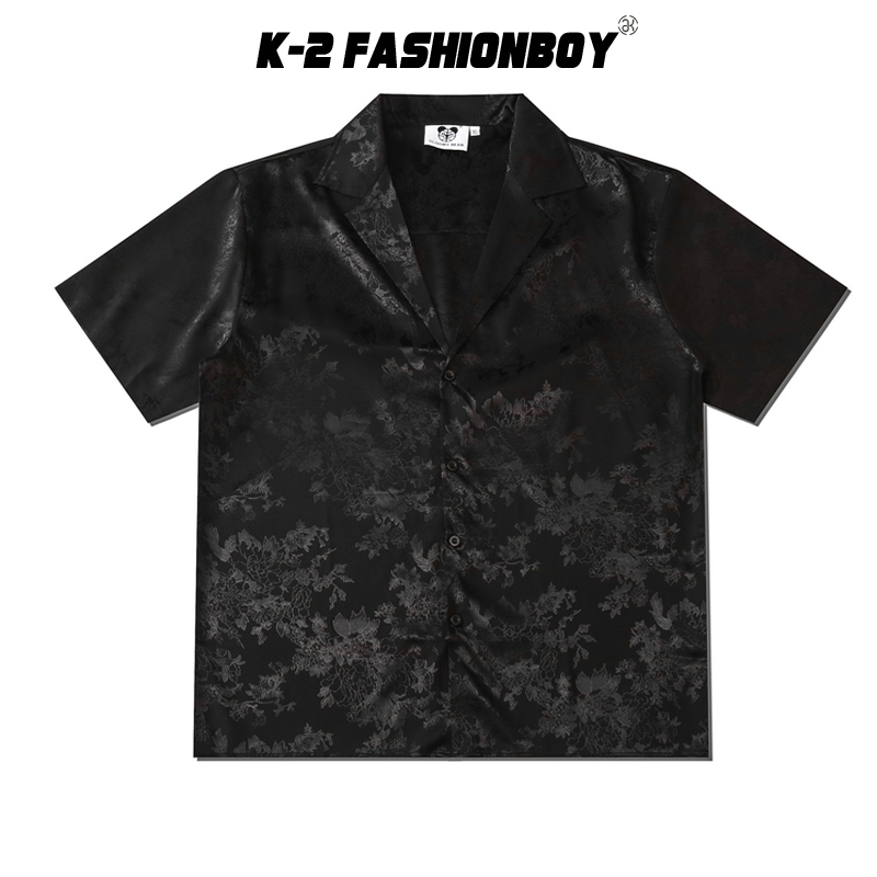 【K-2】黑色質感 復古 滿版 花花 年代感 霸氣 高級感 襯衫 短袖襯衫 穿搭 氣勢逼人 寬鬆落肩【JCST01】M|L|XLShirtsK-2 Fashionboy