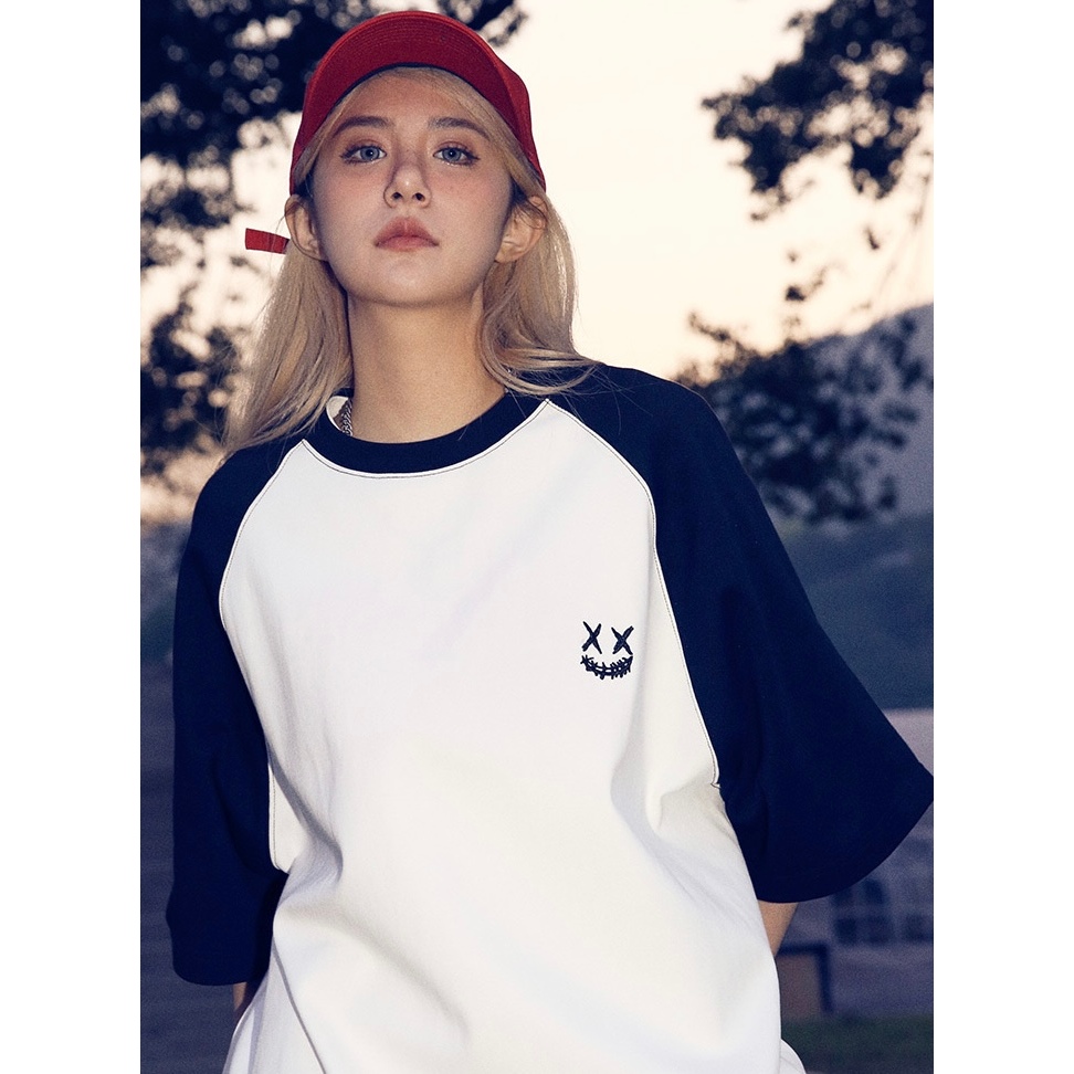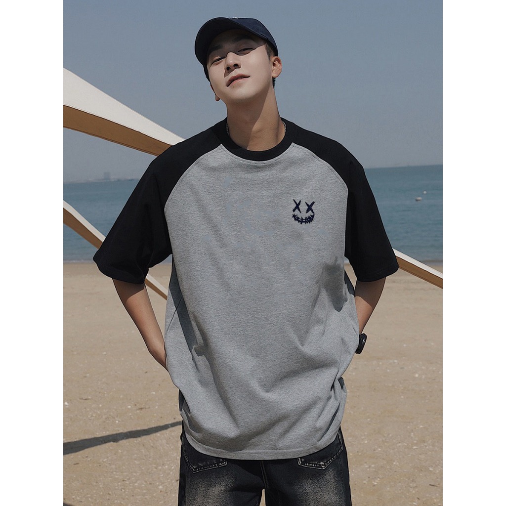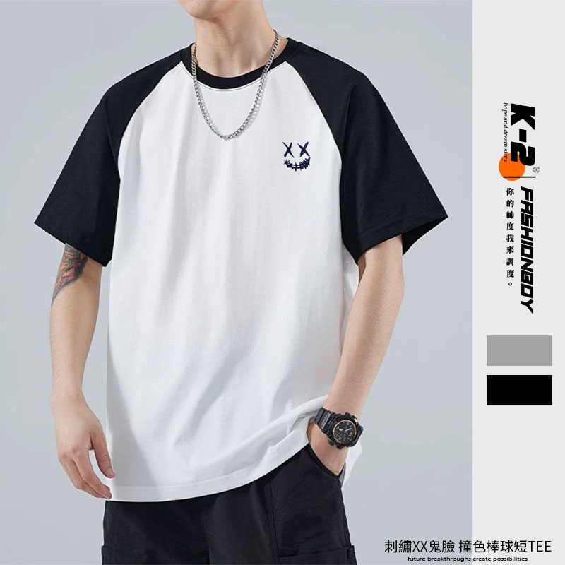 【K-2】XX 刺繡 鬼臉 表情 撞色 棒球 短袖上衣 簡約 基本款 穿搭 短T 春夏 搭配 情侶【J5027】灰色,M|灰色,L|灰色,XL|灰色,XXL|白色,M|白色,L|白色,XL|白色,XXLT-ShirtsK-2 Fashionboy