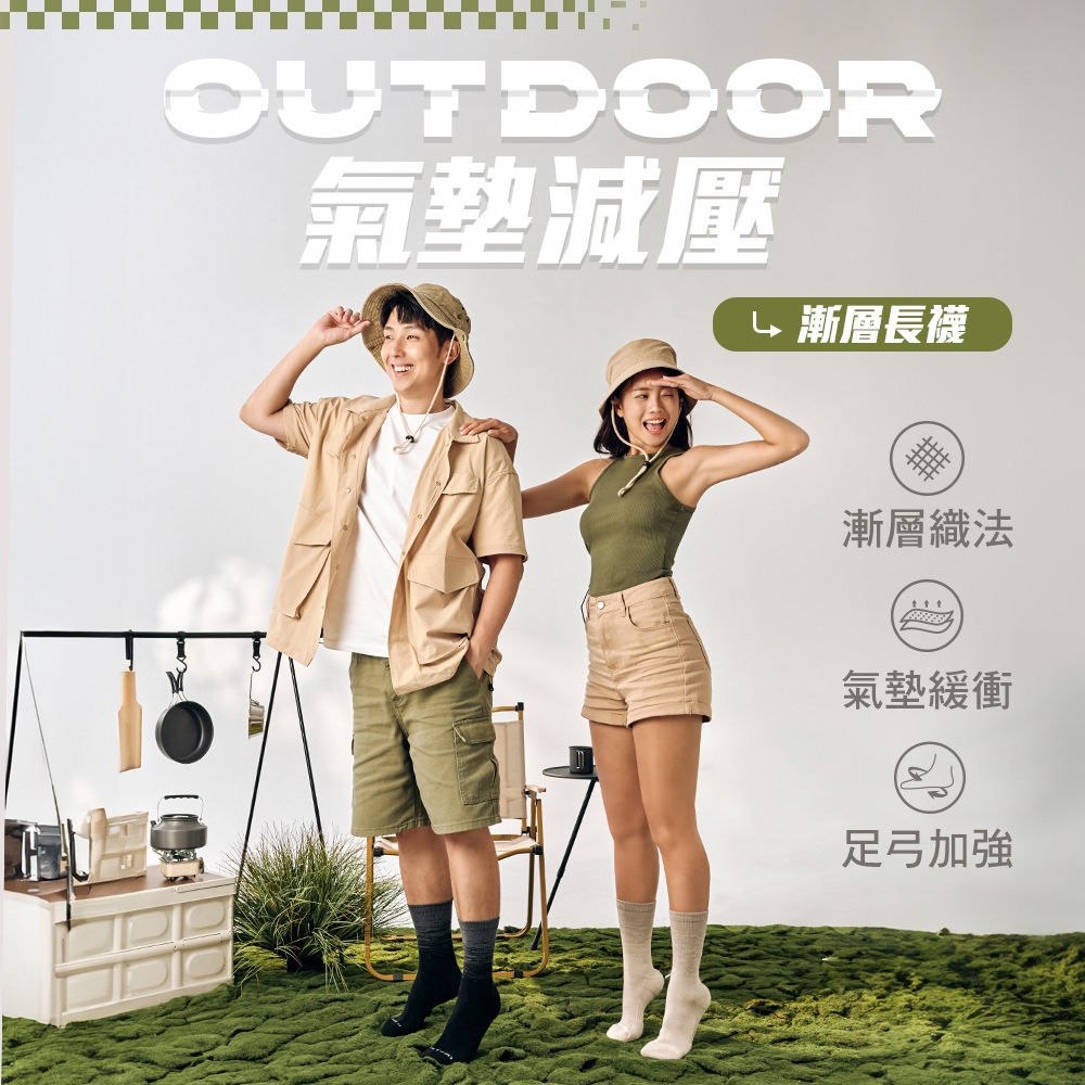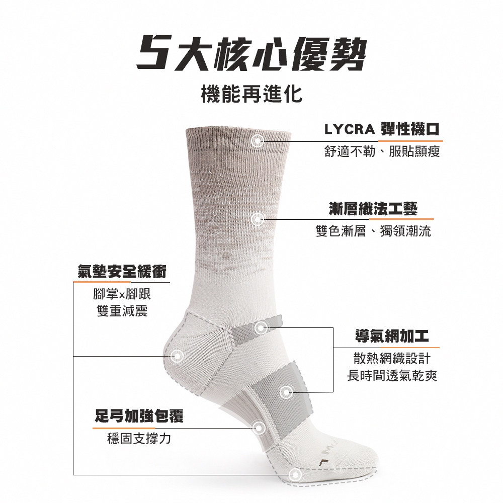 《瑪榭》戶外休閒漸層氣墊長襪-MIT台灣製/氣墊/透氣排汗/長襪/0021463
