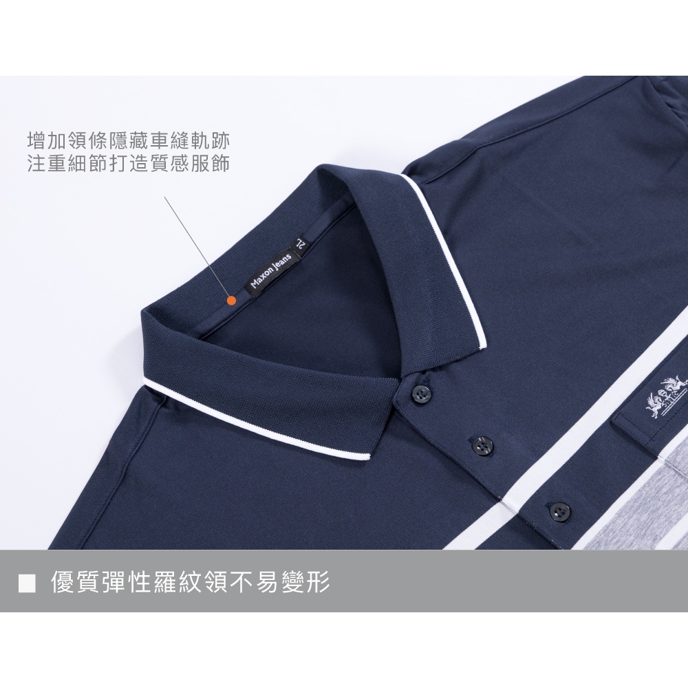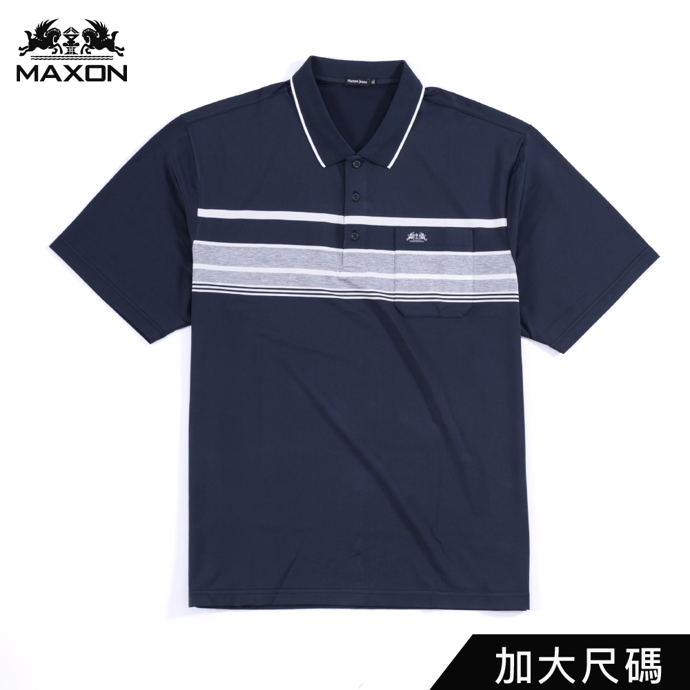 【MAXON大尺碼】台灣製2L~6L深藍灰白條紋排汗彈性POLO衫91814-58 91815-582L|3L|4L|5L|6LPolo ShirtsMAXON馬森大尺碼專賣