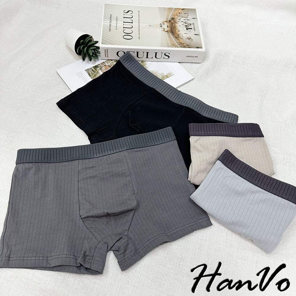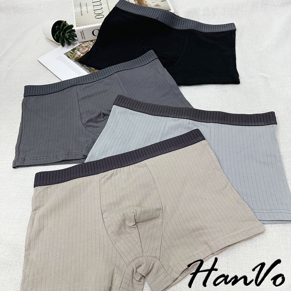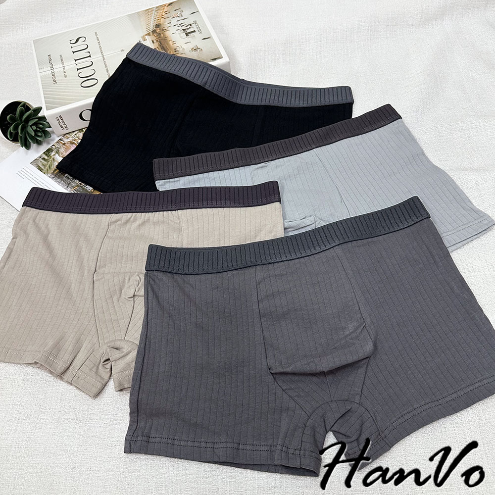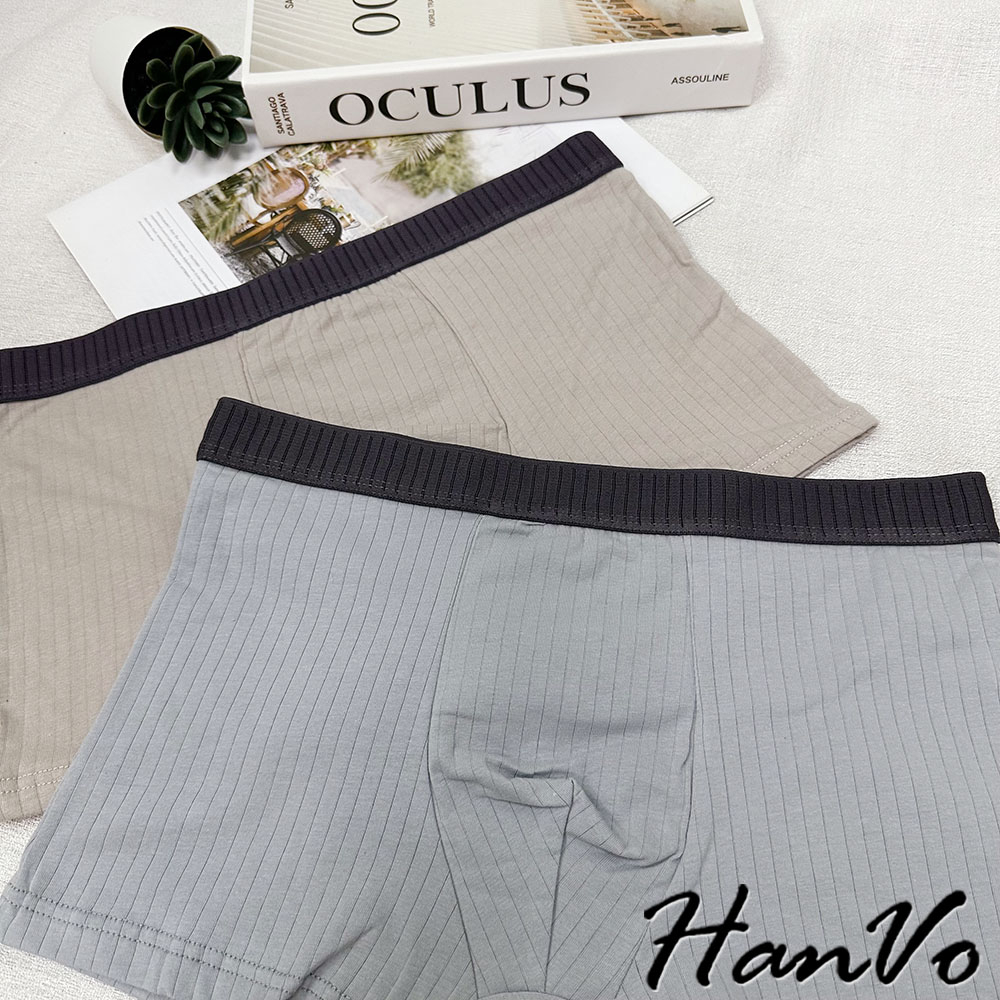 【HanVo】直坑紋柔軟純棉四角褲 吸濕排汗透氣親膚中腰內褲 透氣內褲 男生內褲 內褲 B05-5010