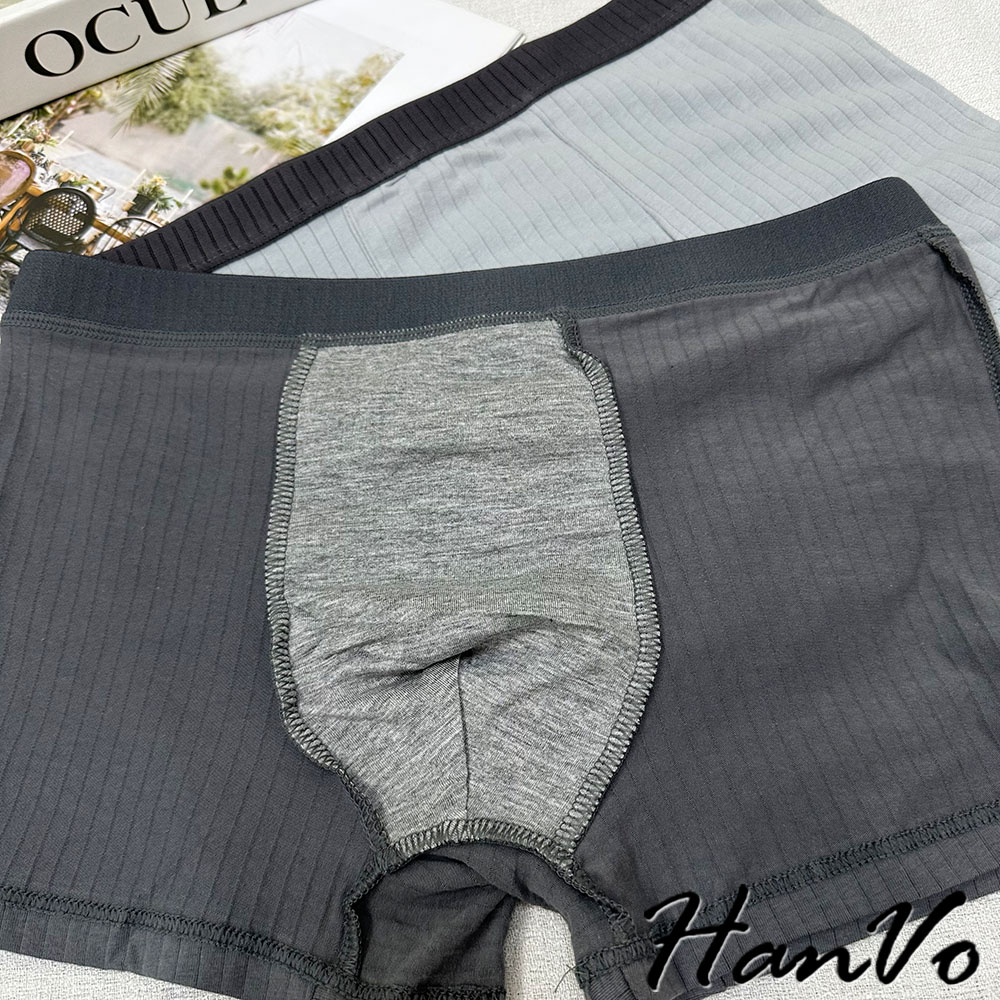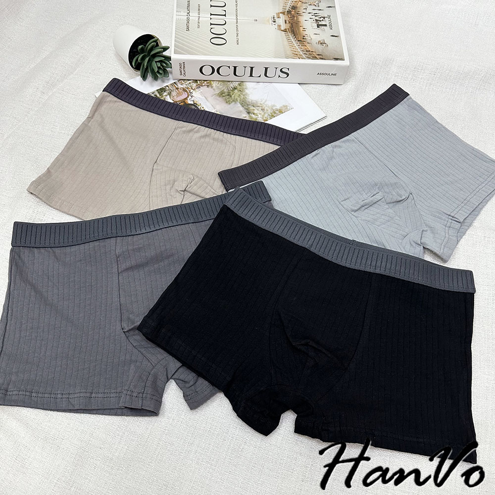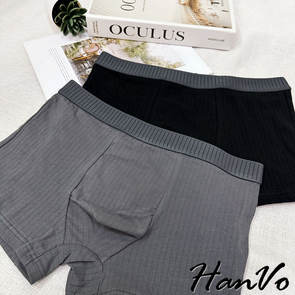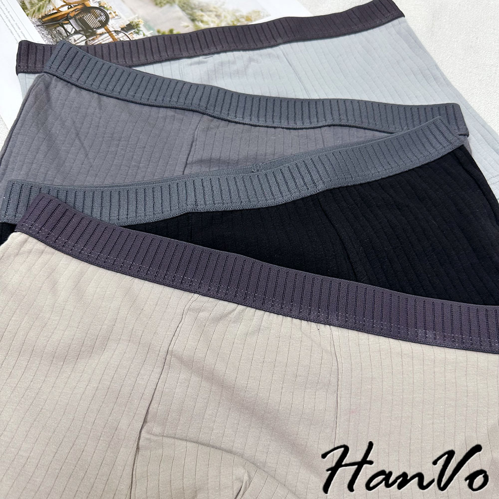 【HanVo】直坑紋柔軟純棉四角褲 吸濕排汗透氣親膚中腰內褲 透氣內褲 男生內褲 內褲 B05-5010