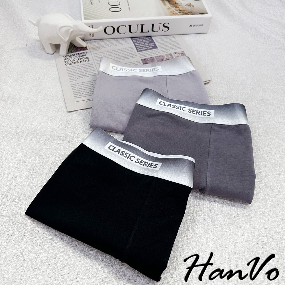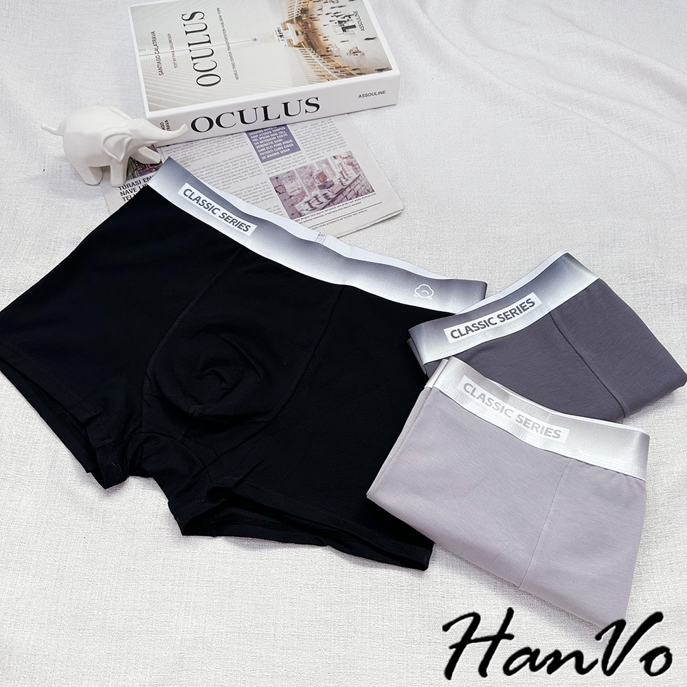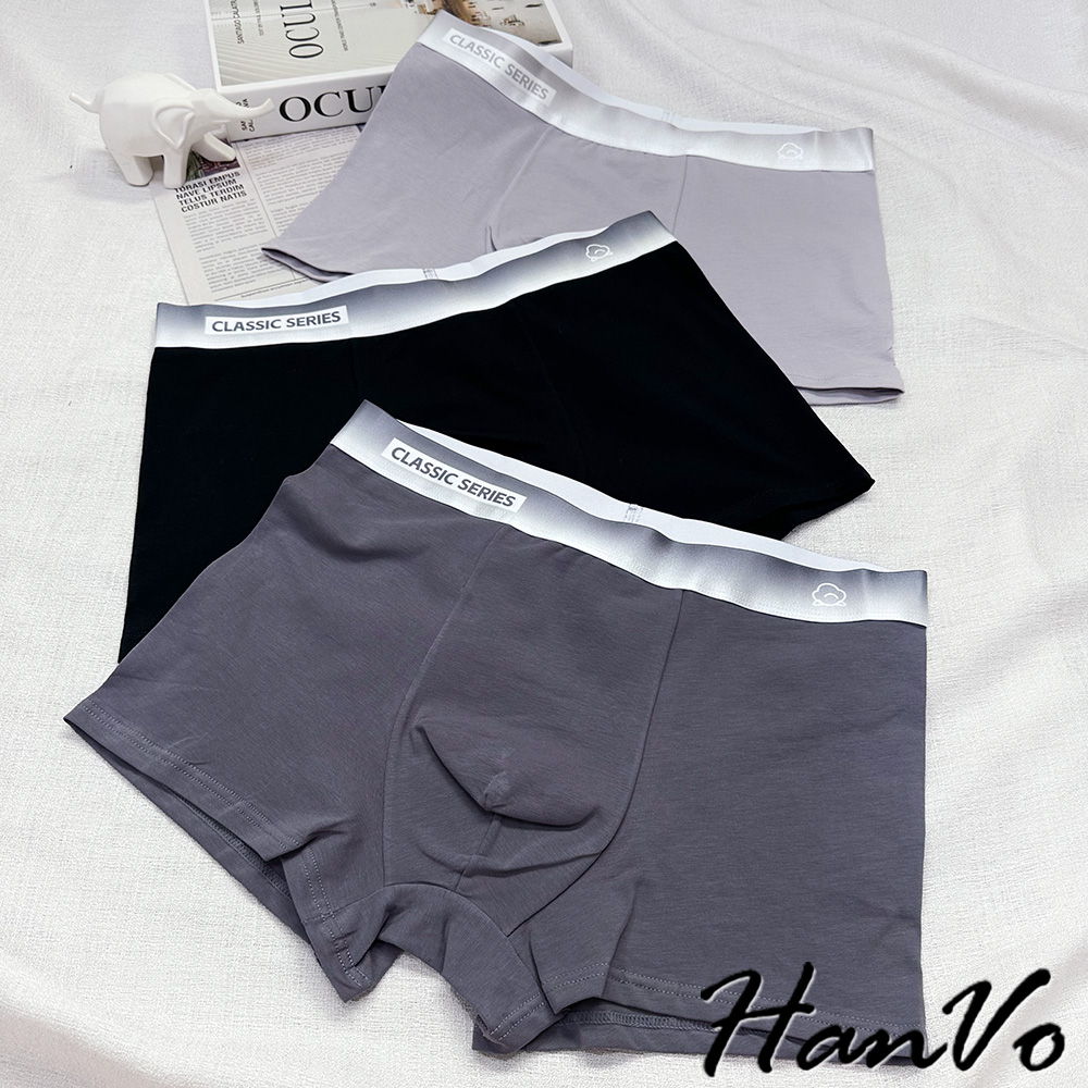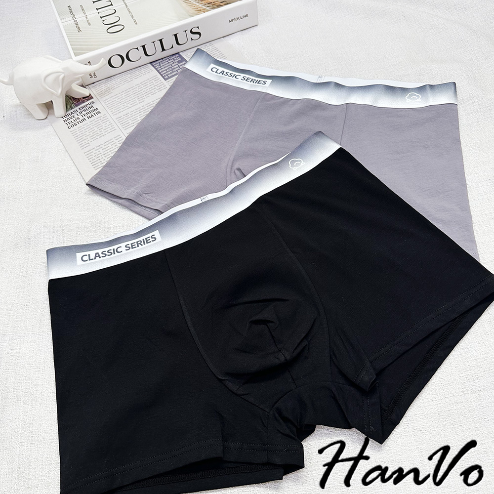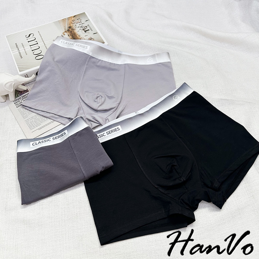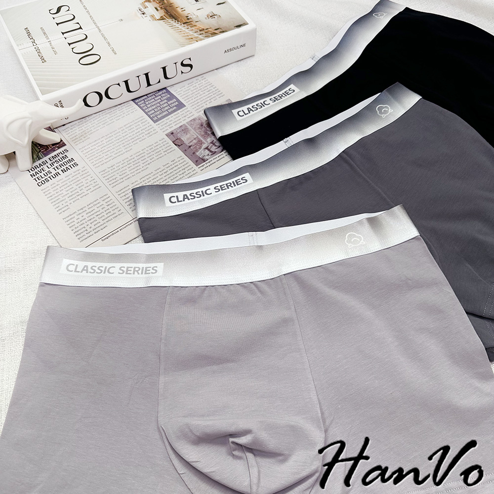 【HanVo】絲光漸層舒適棉質男生內褲 吸濕排汗獨立包裝 透氣親膚中腰內褲 流行男款內褲 內著 B05-5013深灰|黑色|淺灰UnderwearHanVo Wear Collection