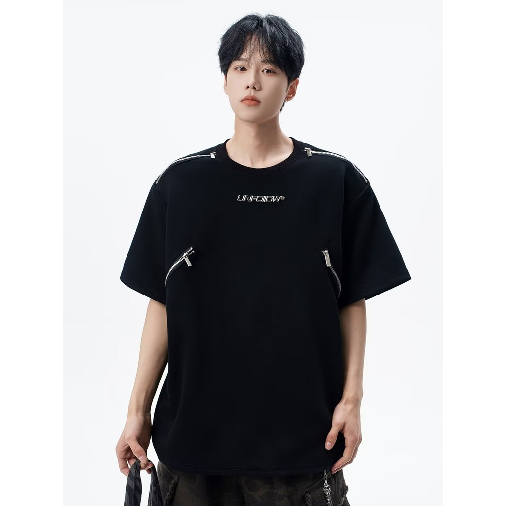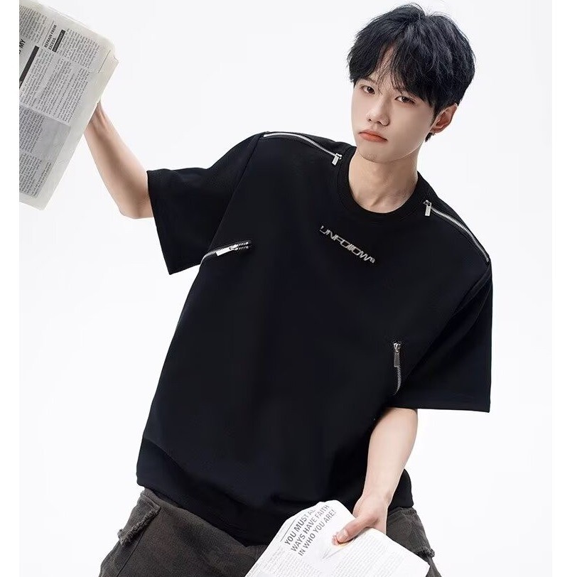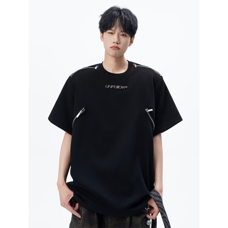 • 【HOT 本舖】男装潮流簡約休閒嘻哈創意設計印花純棉短袖T恤衫夏季休閒百搭體恤衫