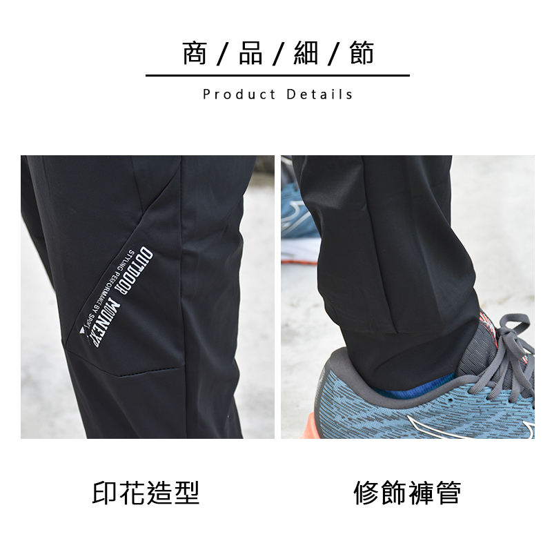 • 【JH22035】口袋拉鍊 造型印花 運動長褲 休閒長褲 運動褲 男長褲 束口褲 束腳褲 長褲