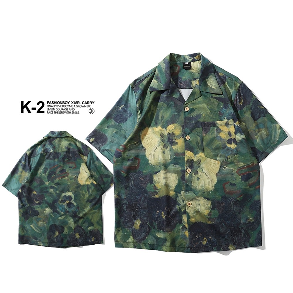 【K-2】春夏新款 夏日百搭 復古印花 油畫 抽象藝術 短袖襯衫 花襯衫 男女不拘 舞台 MV 通告【B8009】M|L|XL|XXLShirtsK-2 Fashionboy
