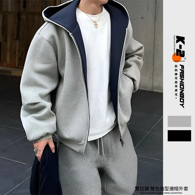 【K-2】cityboy 雙拉鍊 雙色造型 連帽外套 寬鬆外套 復古外套 長袖外套 Y2K外套 撞色 K2【JW105】灰色,M|灰色,L|灰色,XL|黑色,M|黑色,L|黑色,XLJacketsK-2 Fashionboy