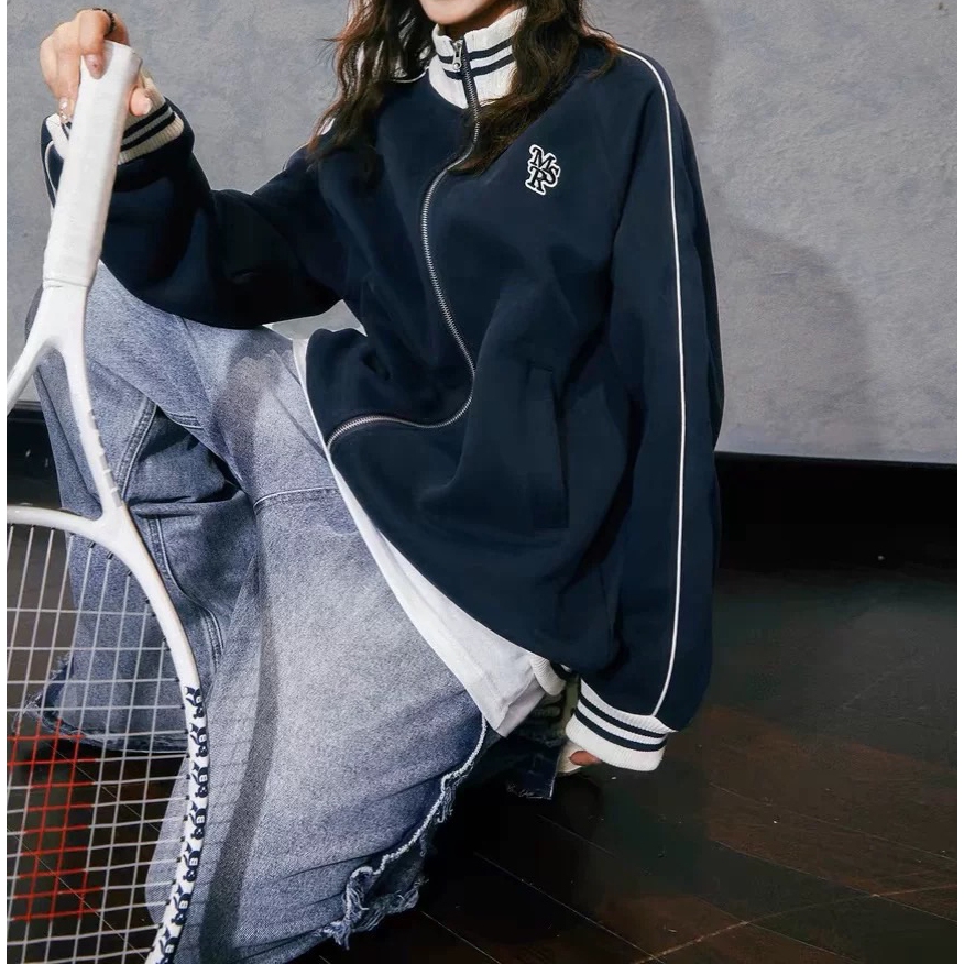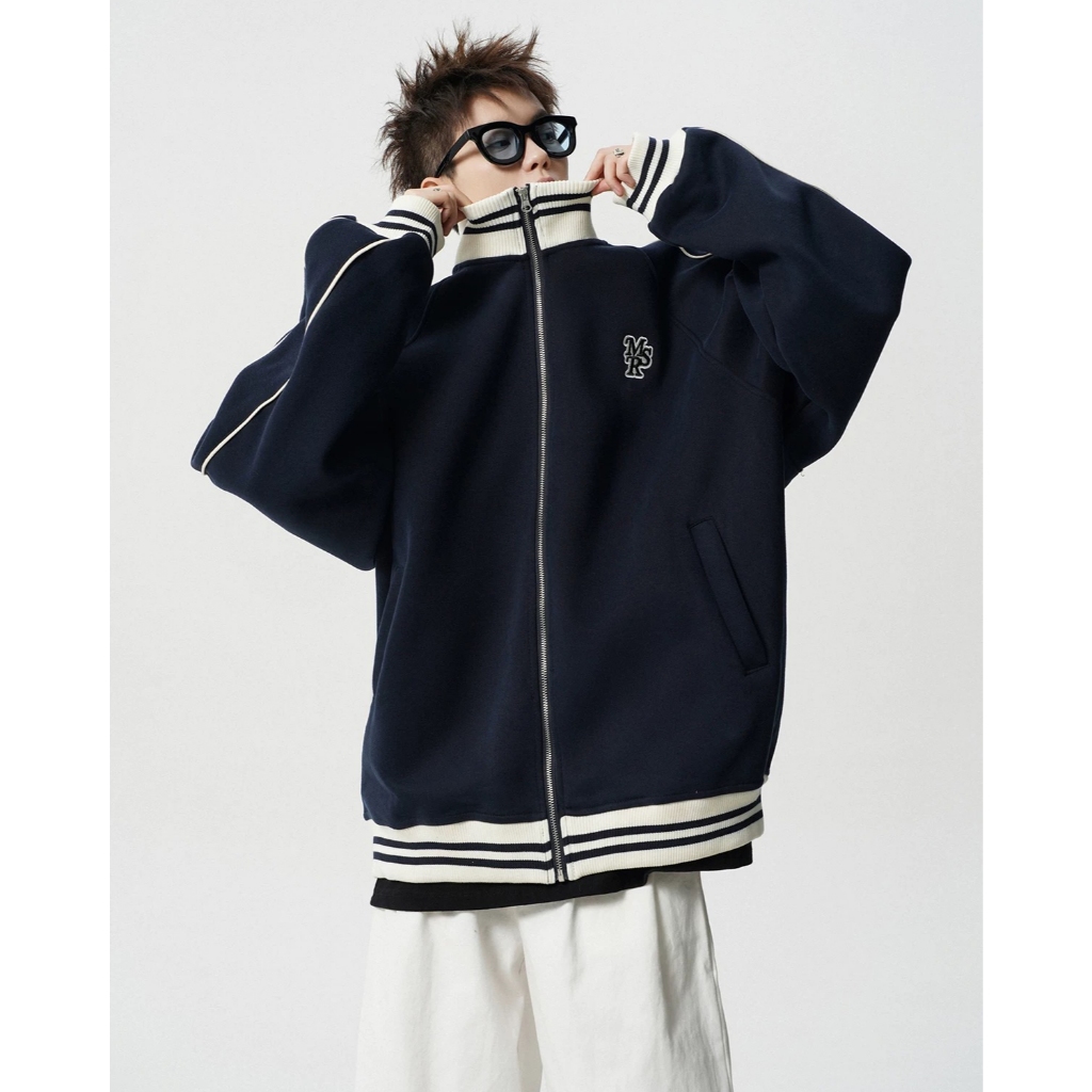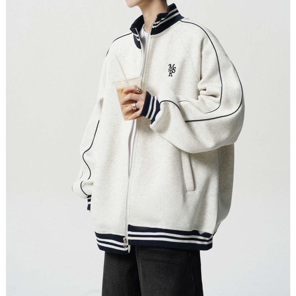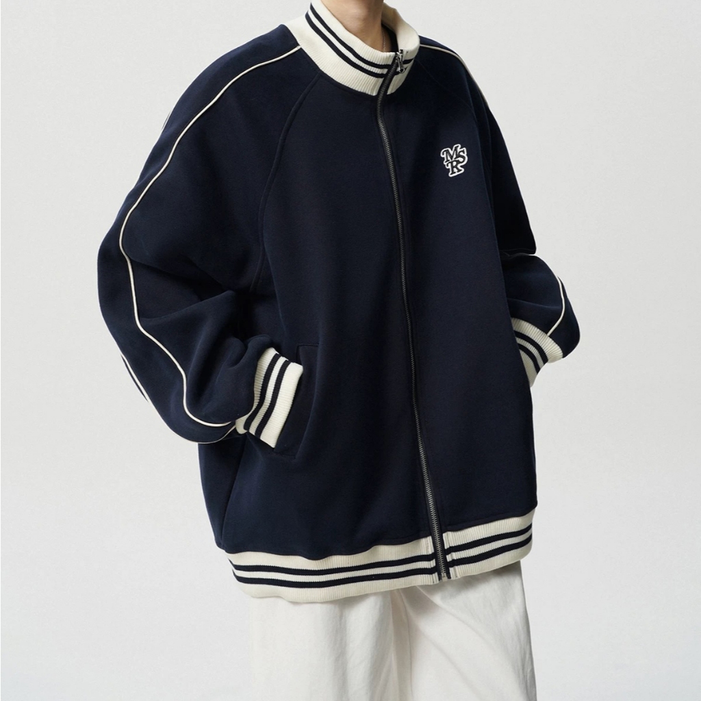 【K-2】美式復古 撞色線條 棒球外套 寬鬆襯衫 小LOGO 休閒外套 長袖 外套 Y2K外套 線條 撞色【JW41】白灰色,M|白灰色,L|藏青色,M|藏青色,LJacketsK-2 Fashionboy