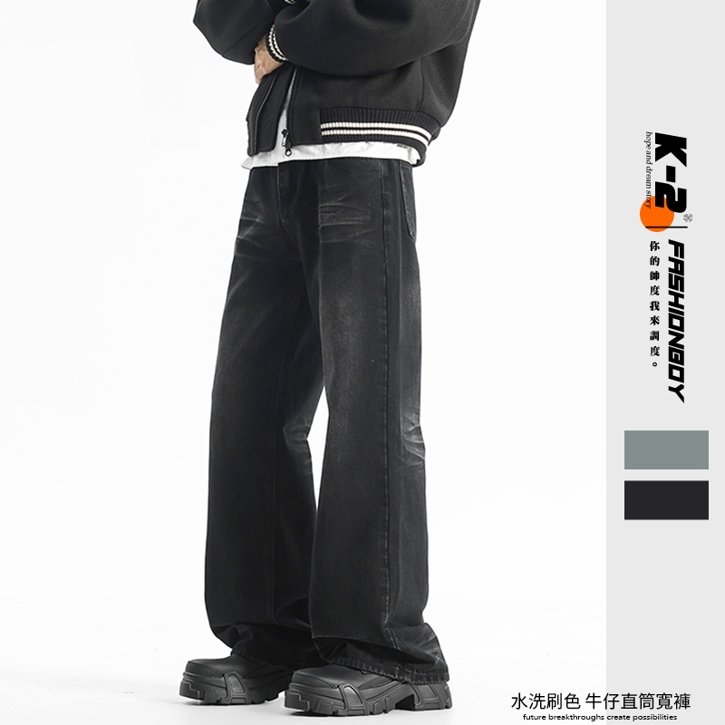 【K-2】水洗 刷色 牛仔 直筒 寬褲 洗水 質感 重磅 丹寧 長褲 牛仔褲 四季可穿 搭配 個性 穿搭【J2120】黑,M|黑,L|黑,XL|藍,M|藍,L|藍,XLK-2 Fashionboy