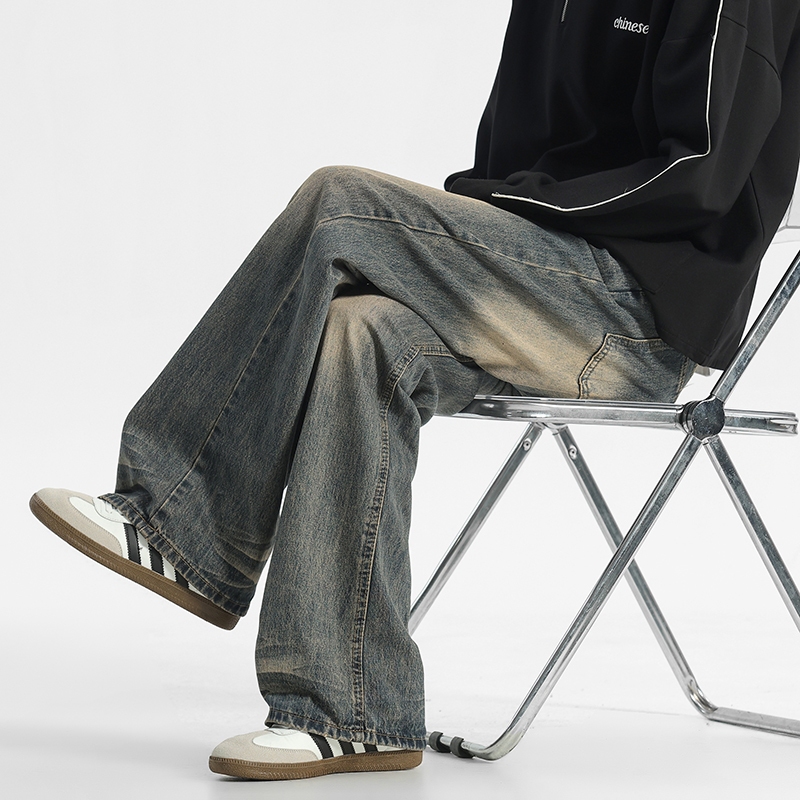 【K-2】水洗 刷色 牛仔 直筒 寬褲 洗水 質感 重磅 丹寧 長褲 牛仔褲 四季可穿 搭配 個性 穿搭【J2120】