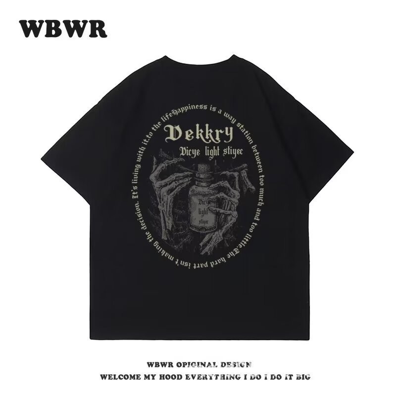 【HOT 本舖】男装潮流簡約休閒嘻哈創意設計印花純棉短袖T恤衫夏季休閒百搭體恤衫