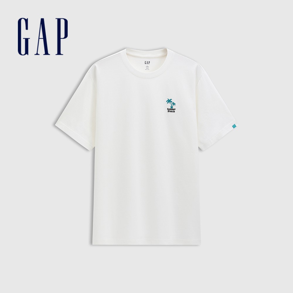 Gap 男裝 純棉刺繡圓領短袖T恤-白色(729108)L|XL|XXL|XXXL|XS|S|MT-ShirtsGap官方旗艦店