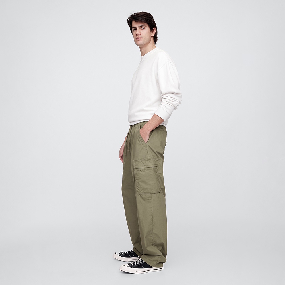 Gap 男裝 抽繩鬆緊工裝褲-軍綠色(782410)M|L|XL|XS|SPantsGap官方旗艦店
