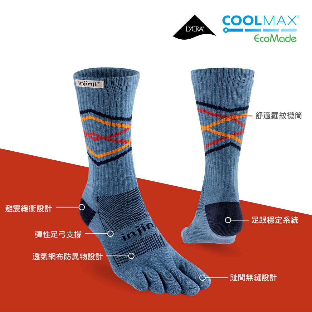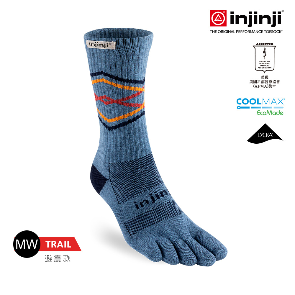 【injinji】Trail野跑避震吸排五趾中筒襪FX(湖泊藍)-NAA3753|厚底防震 運動員推薦 馬拉松 五趾襪湖泊藍,S|湖泊藍,M|湖泊藍,LGOHIKING戶外用品專賣店